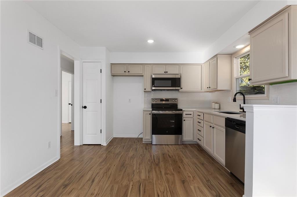 Back On Market, No Fault To Seller....Welcome to this charming 4-bedroom, 2-bathroom home nestled in the heart of Blue Springs—just minutes from top-rated schools, scenic parks, and quick highway access! Step inside to discover a fully remodeled interior featuring a stunning updated kitchen with stainless steel appliances, modern light fixtures, fresh paint, and stylish new flooring throughout. Both bathrooms have been beautifully refreshed with contemporary finishes, giving the entire home a clean and inviting feel. Enjoy your morning coffee or evening gatherings on the oversized deck in the spacious, fenced backyard surrounded by mature trees, offering privacy and a touch of nature right at home. With its modern updates, newer AC, energy efficient windows, unbeatable location, and move-in ready condition, this home truly has it all!