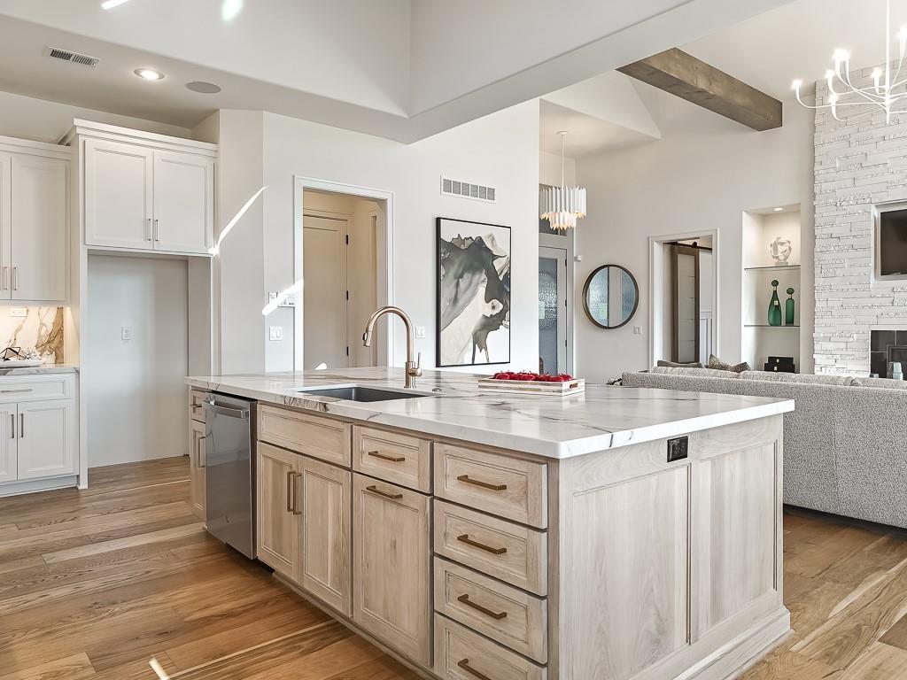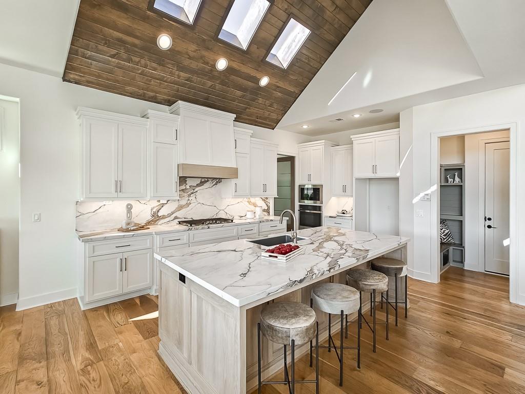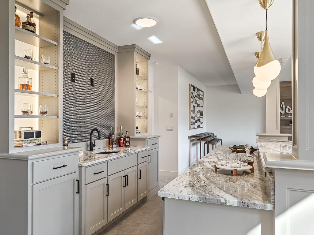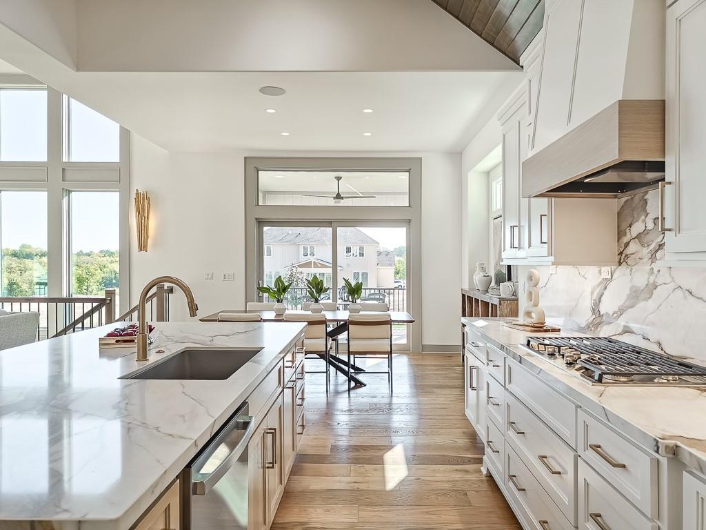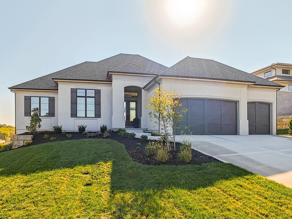 Expected Spring 2026 completion, welcome to the gold award-winning Brookridge IV by the esteemed Don Julian Builders. Located on a quiet cul-de-sac on lot 19, backing to green space with a dramatic view to the horizon, this reverse 1.5-story plan in Bristol Highlands Estates blends luxury with livability. Enter through double doors into a dramatic foyer and great room with 2-story windows, vaulted wood-beamed ceiling, and a striking stone fireplace to impress from the moment you step inside. The kitchen shines with an oversized island, 5-burner gas cooktop, custom hood, vaulted ceiling with skylights, and a massive walk-in pantry with prep space and second fridge. Just off the dining area, step onto the covered deck—perfect for morning coffee or unwind in the evening with a view to the horizon. The main-level primary suite offers a spa bath with dual vanities, soaking tub, tiled shower, and a walk-in closet that connects to the laundry. Two more bedrooms, a full bath, and a powder room for guests round out the main floor. Downstairs, the finished walkout basement is built for fun with a media wall, rec room, game space, spectacular bar, plus 2 more bedrooms with private bathrooms that walks out to a patio for another outdoor entertaining space. Nestled in the rolling hills of Shawnee, Bristol Highlands offers stunning views and a peaceful setting. Enjoy top-rated De Soto schools, shopping, dining, and outdoor recreation with nearby parks, trails, Shawnee Mission Park, and multiple golf courses. It’s the perfect balance of convenience and natural beauty. Photos and virtual tour are of a similar model home.