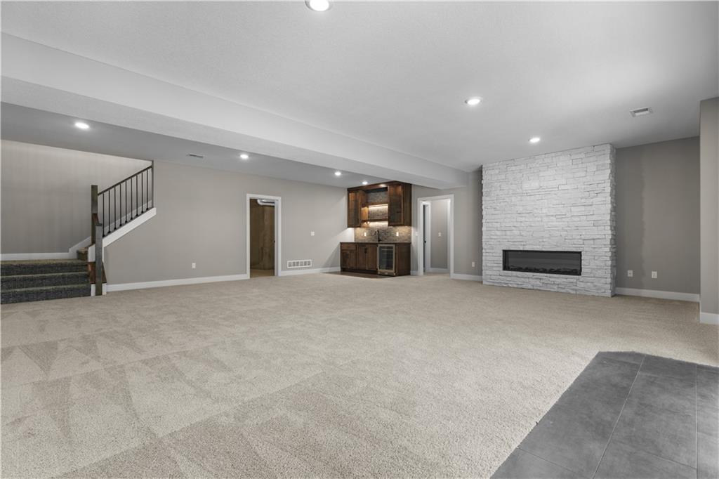 Set to be complete late May! Back on market - no fault of the seller; Buyer elected not to proceed due to personal circumstances. Only one, of handful of opportunities remaining as the community approaches full build-out, with all construction set to be completed by year’s end! Residents enjoy LOW HOA fees and convenient access to major highways, while remaining minutes from everyday conveniences, lake, scenic nature preserves, local winery, and the new county trail system! Set on an estate sized, WALKOUT LOT, this home is not your typical layout; it is designed to accommodate a variety of lifestyles! It features two spacious main level suites, each with a private bath and walk-in closet. Main level suite one includes a ZERO ENTRY tile/glass SHOWER, dual vanities, and direct access to the walk-in closet and laundry. The large dining area easily seats 8–10 and opens to the great room and kitchen, creating a seamless space for entertaining and gathering. The finished lower level offers a large, open rec room with electric fireplace and wet bar, ideal for a pool table, gaming, or additional living space. Two more bedrooms, one bathroom and AMPLE UNFINISHED STORAGE SPACE complete the lower level, making this home versatile and highly functional! Designer upgrades include quartz countertops, designer lighting and plumbing selections, 8 ft front and sliding deck doors, and stairs from covered deck to covered patio below. Schedule your showing today! *Some photos depict a previous model home. Finishes may vary.