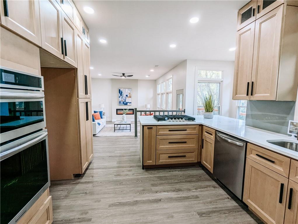 Beautifully Remodeled Home in Wyncroft Subdivision – Move-In Ready! This stunning home is perfectly positioned on a spacious corner lot within a quiet cul-de-sac. Completely updated from top to bottom, it blends modern elegance, comfort, and functionality. Step inside to find luxury vinyl plank flooring throughout and an inviting, open layout ideal for today’s lifestyle. The chef-inspired eat-in kitchen features light oak cabinetry, sleek quartz countertops, a gas cooktop, built-in oven, and microwave. The expansive living room showcases floor-to-ceiling windows that fill the space with natural light and open directly to the deck—perfect for seamless indoor/outdoor entertaining. Enjoy a formal dining room for family gatherings and special occasions. The primary suite offers a private retreat with a spa-like ensuite, featuring dual vanities, double zero-entry showers with a bench and shower system, a separate water closet, and a walk-in closet. Three additional bedrooms and a full bath with double vanity and tub/shower combination complete the second level. The fully finished walk-out basement includes a cozy family room, guest bedroom, and full bath—ideal for visitors or multi-generational living. This home has been meticulously remodeled and is truly move-in ready. Agent is related to seller.