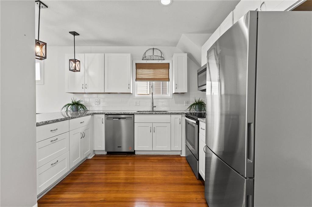 This three-bedroom, two-bath home in Pendleton Heights blends historic character with thoughtful modern updates. The main floor showcases refinished original hardwoods, an open kitchen with a cozy breakfast nook, and a rare main-level primary suite with a renovated bath. Upstairs, you’ll find two additional bedrooms, built-in shelving, and a full bath with laundry for added convenience. The enclosed porch offers flexible living or office space, and the backyard features a concrete pad, retaining wall, and two off-street parking spots. Just blocks from PH Coffee, Core Coffee, and NorthEast Pizza, this home delivers history, function, and neighborhood charm—all in one of Kansas City’s most iconic districts.