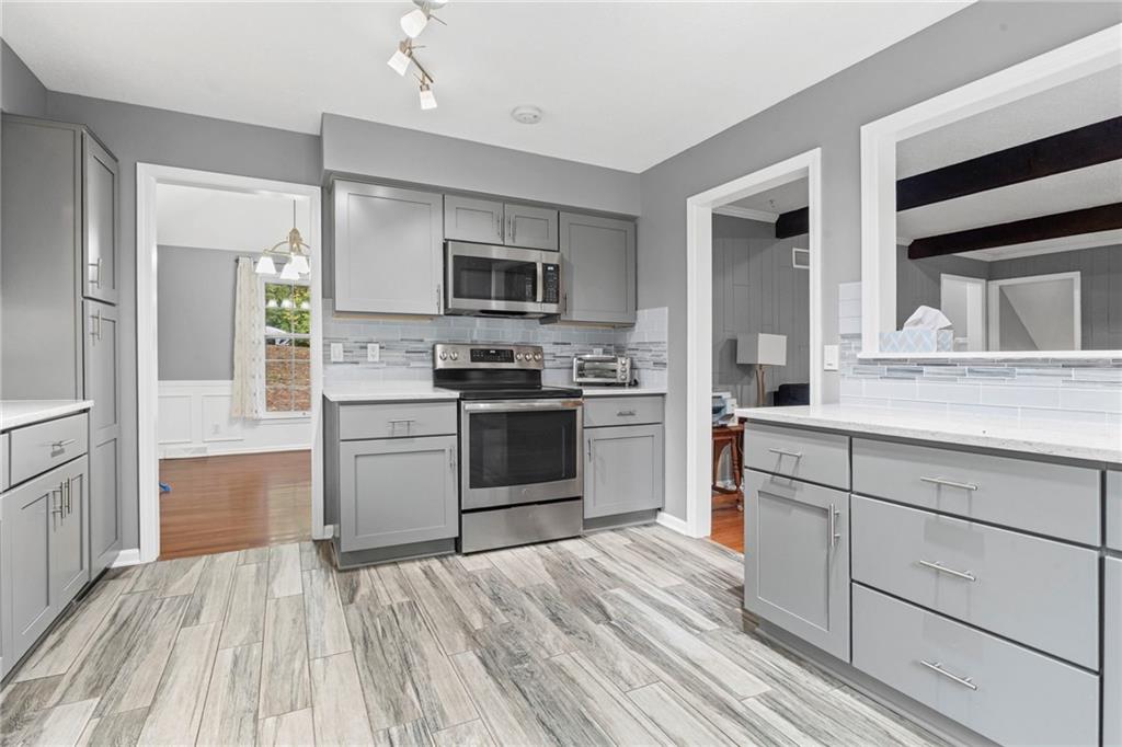 Lots of updates have been done to this 4 bed 2.5 bath split level home in much desired Quivira Highlands. Enjoy sitting on the multi tiered deck that backs up to treed area. This back yard offers lots of privacy. Fresh paint through out. Updated flooring, baths, and kitchen are some the the updates that have been done. New roof, and water heater within the last year, HVAC is on 4 years old. Finished basement with bar area would be great for entertaining! Formal living and dining as you enter the house with a large family room with cozy brick fireplace that is open to the kitchen. A great house in a great neighborhood, ready to move into!