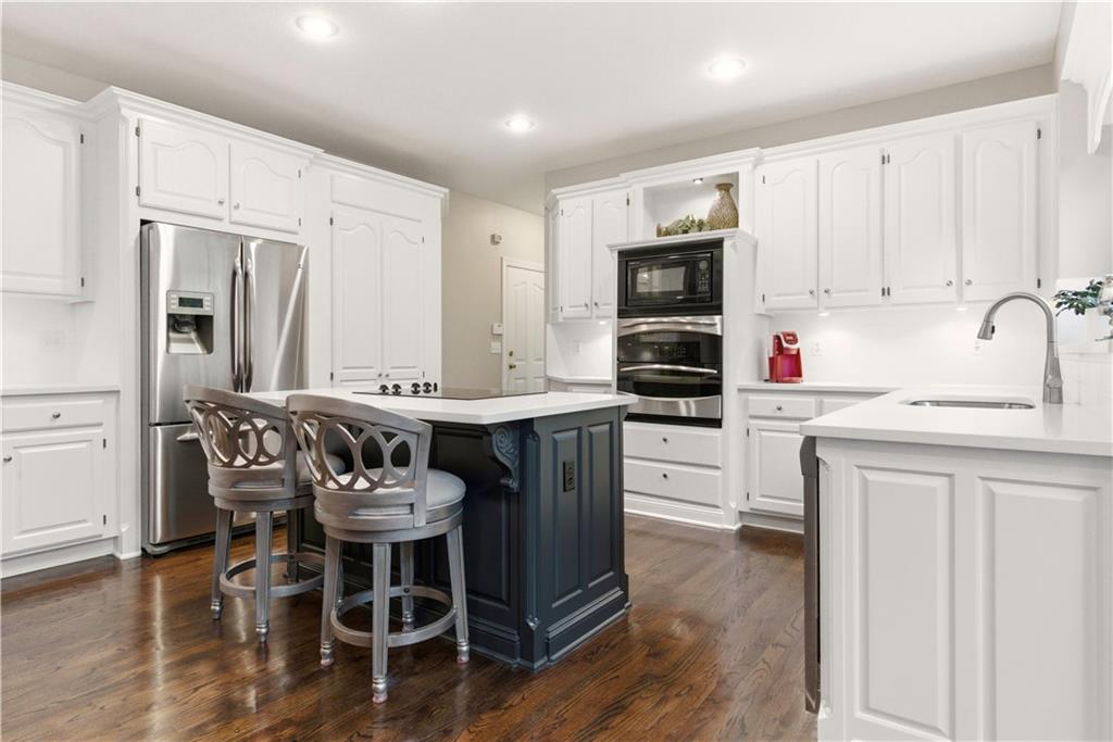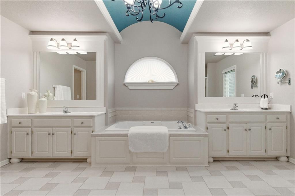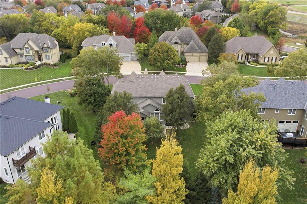 PREMIUM OVERLAND PARK LOCATION FOR THIS STUNNING 5 BEDROOM 4.5 BATH IN NOTTINGHAM ESTATES AT ST. ANDREWS! This one will impress even the pickiest!! Great flowing floorplan featuring an inviting great room with cozy see-thru fireplace and large windows that flood the space with natural light. Delight the chef in this kitchen with quartz countertops, center eat-in island, 3 built-in ovens, plenty of cabinet and prep space and walk-in pantry. Entertainer's delight with an adjacent breakfast area, hearth room and formal dining!!! Enjoy a favorite beverage in the sun room which provides easy access to the deck—ideal for entertaining or relaxing outdoors! Front office, convenient half bath, laundry and mud room room featuring built-in desk finishes off the main level. Upstairs, retreat to the spa-like primary suite with vaulted ceiling, fireplace and en-suite bath featuring two separate vanities, whirlpool tub, separate shower and walk-in closet with built-ins. Three additional bedrooms --one with a private full bath while the other two share a bath between them each with their own vanity completes the upper level. Enjoy extra living space in the finished basement with huge family room including wet bar, 5th bedroom and 4th full bath, perfect for guests and still unfinished space for storage. Fantastic neighborhood close to top-rated schools, parks, dining, and shopping! WELCOME HOME!