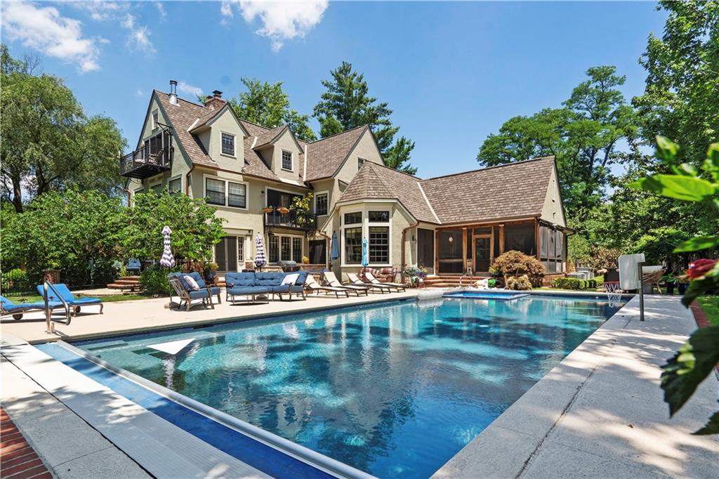 Perched above the pond at Loose Park, 239 W 52nd Street offers one of Kansas City’s most iconic and picturesque settings—where front-row views of the water, winding paths, and daily sunsets create a lifestyle unlike any other. Originally built in 1915 and expanded in 2011, this stately three-story residence blends timeless architecture with thoughtfully designed living spaces. This offering includes both the home and the adjoining lot—sold together as one extraordinary property. Inside, you’ll find six bedrooms, four and a half baths, zoned HVAC, and a rare three-car basement garage. The expansive kitchen and family room open to a resort-style outdoor retreat featuring a gunite pool, hot tub, built-in outdoor kitchen, and beautifully maintained gardens with dedicated herb and vegetable beds. The third floor includes a vaulted theater/family room, two bedrooms, and a full bath. A hidden bonus room with rustic décor and a working Buck stove—accessed via secret bookcase door or spiral staircase from the primary suite—offers a cozy, one-of-a-kind escape. Two heated patios extend the seasons: one overlooking Loose Park’s pond, the other bordering a privately owned neighborhood ball field—a beloved local landmark included with the sale. This field, recently separated by lot split, continues to host community wiffleball games and adds to the property’s unique charm. Located just minutes from the Country Club Plaza, this exceptional estate combines historic character, modern comfort, and unmatched surroundings in one of Kansas City’s most sought-after neighborhoods. Sale includes both the residence and the adjoining lot.
