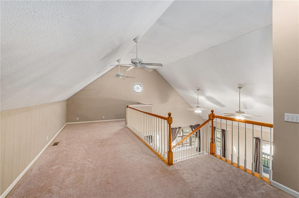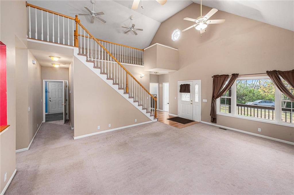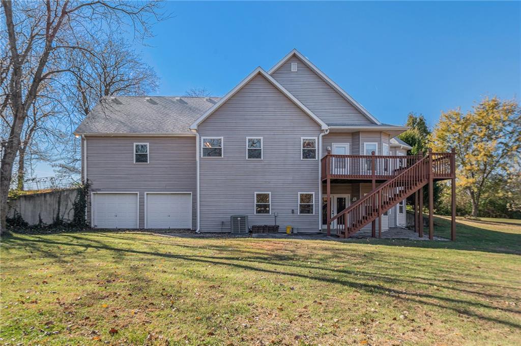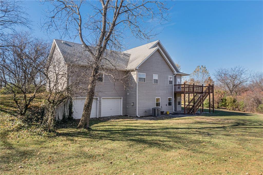 Nestled on a private 5-acre retreat, this beautiful 3-bedroom, 3-bath home offers a perfect blend of space, comfort, and seclusion. The main level offers an open floor plan with soaring ceilings, creating an inviting living area that flows seamlessly into the kitchen and dining space—ideal for entertaining or cozy family gatherings. With convenient access to the large deck overlooking the back yard, where wildlife is abundant, and the privacy is unmatched. Upstairs, a loft area provides extra living space—perfect for a home office, reading nook, or guest lounge. The partially finished basement adds even more potential, with a full bathroom, fireplace, large open area for your rec-room or additional bedroom, all under a 9’ ceiling; this space is extremely versatile. The 2 car garage on the main level is suspended, offering the ultimate space for your hobbies or additional storage with access through 2 full-size garage doors on the back side of the home.