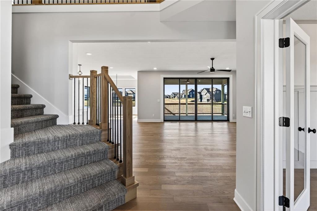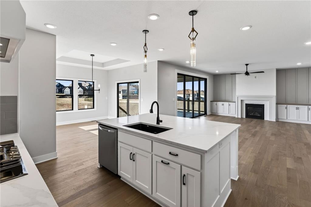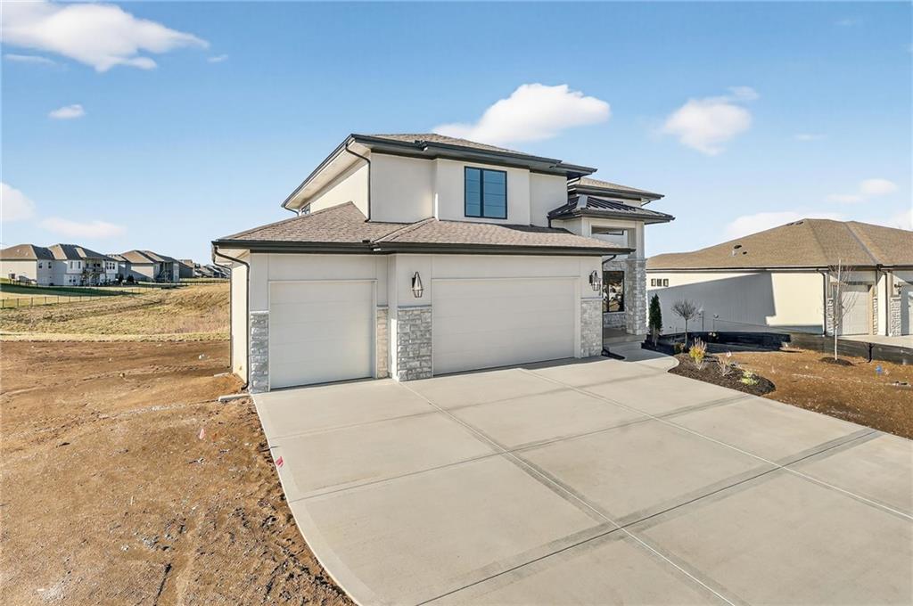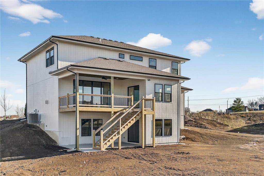 Introducing The Linden by Hearthside Homes, a stunning 2-story design that blends craftsmanship, comfort, and modern style. Located in the Homestead community, this home sits on a desirable walkout lot that backs to greenspace, offering added privacy and scenic views. A spacious garage includes an extra 10x13 storage area—perfect for all your gear and hobbies. Step into the grand two-story foyer where a den and open staircase welcome you inside. The great room features custom built-ins beside the fireplace and an oversized slider leading to a large 12x20 covered deck overlooking the backyard includes stairs down—ideal for relaxing or entertaining. The designer kitchen showcases painted custom cabinetry, a large island, quartz countertops, built-in wall oven, cooktop, wine fridge, and a generous butler’s pantry with prep space and storage. Upstairs you’ll find four bedrooms and three full baths, including a luxurious primary suite with a freestanding tub within a walk-in shower, dual vanities, and a large walk-in closet. Built with Hearthside’s signature double-wall construction, I-joist floor system, and engineered truss roof for lasting quality and comfort. Every Hearthside home includes a 12-month builder warranty, third-party inspections, a verified video sewer line scope, and professional HVAC duct cleaning—ensuring your new home is delivered in pristine, top-tier condition. Move-in ready and designed for today’s lifestyle, The Linden combines thoughtful design with enduring craftsmanship. Also features Black roof, windows, & gutters, sprinkler system. Liberty School district, Liberty High. HOA community pool, clubhouse, outdoor pavilion area, pickle ball court, 3 acre fishing pond and walking trail. Aprox. 15 minutes to downtown Kansas City and KCI Airport! Home aprox. completion date is mid Jan. 2026!