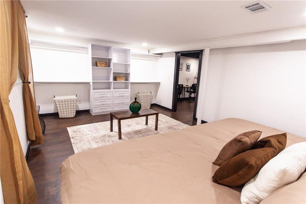 Bedroom featuring dark wood-type flooring and recessed lighting