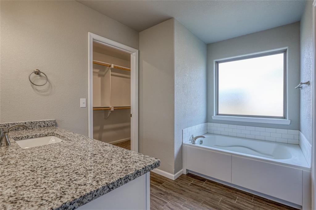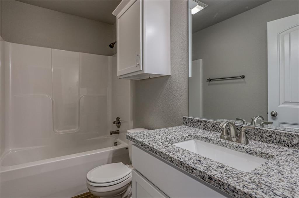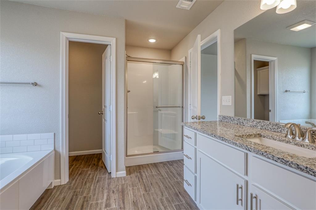 The Joanna is a great plan. She features a picturesque stone and brick exterior with a covered entry. Inside, this home has a corner fireplace and a spacious living area for gatherings. Enjoy a soaker tub, a separate shower, and his and her vanities in the master suite. These photos are a representation of the Joanna. Selections may vary from this home and plans are subject to minor changes.