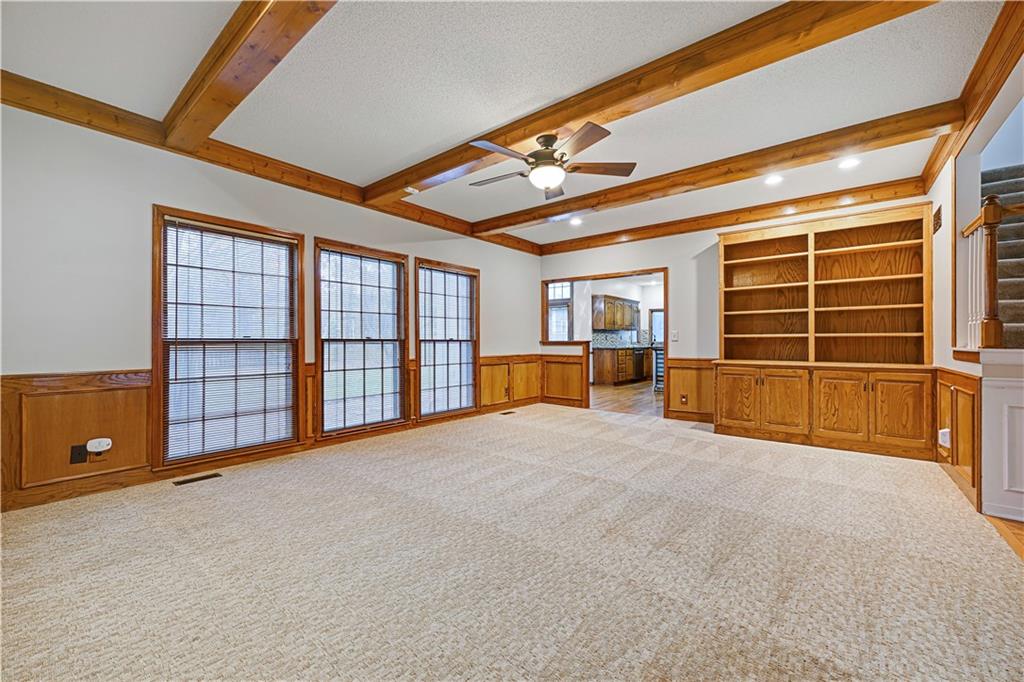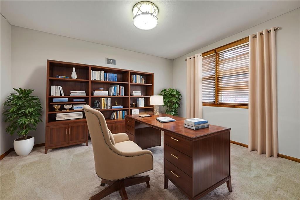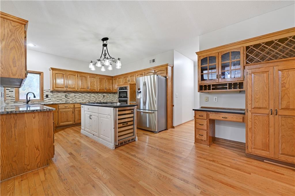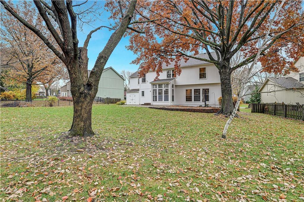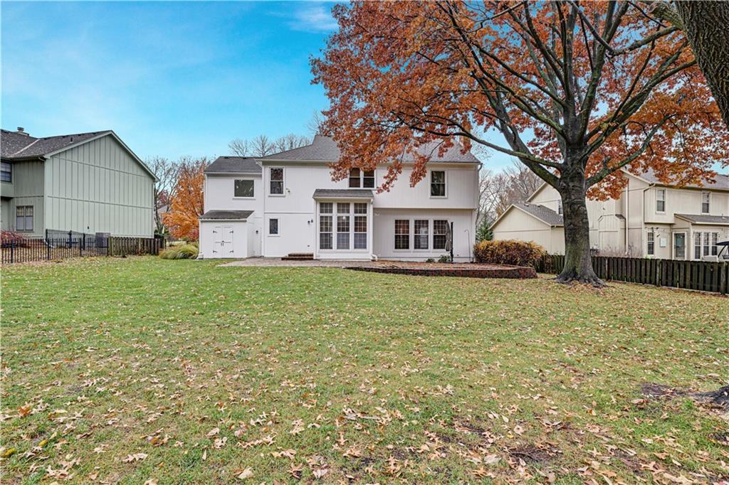 Open House Saturday, 11/22 from 2:00-4:00 PM and Sunday, 11/23 from 11:00 AM - 1:00 PM! Welcome home to this stunning 2-story tucked away on a quiet cul-de-sac in the highly desired Carriage Crossing neighborhood! Impeccably maintained by its original owners for 35 years, this residence shines with timeless charm, thoughtful updates, and undeniable pride of ownership. From the moment you arrive, the expanded front porch invites you to relax and enjoy your morning coffee in a peaceful, tree-lined setting. Inside, a two-story entry with elegant chandelier opens to a formal living room or office on one side and a charming dining room with beadboard detailing on the other. The cozy family room showcases rich wood paneling, warm carpeting, and a gas fireplace—an inviting centerpiece for gatherings. The spacious kitchen offers abundant cabinetry, stainless steel appliances, and a cheerful breakfast nook overlooking the backyard. A guest bath, mudroom, and laundry area complete the main level for everyday convenience. Upstairs, four generously sized bedrooms and three full baths provide room for everyone. The primary suite includes a sitting room—perfect for an office or reading nook—and a spa-like bath with dual vanities, jetted tub, and large walk-in closet. Each secondary bedroom has a walk-in closet; one enjoys a private en suite, while the others share a Jack-and-Jill bath with individual vanities. The finished lower level features a wet bar, full bath, and spacious rec room ideal for movie nights, game days, or kids’ hangouts. Outside, enjoy a fenced backyard with brick paver patio and a unique gravel lounging area perfect for grilling, play, or relaxation. Located in the top-rated Blue Valley School District, Carriage Crossing offers a welcoming community with neighborhood pool, friendly neighbors, and quick access to shops, restaurants, medical care, and highways. This exceptional home truly checks every box—don’t miss your chance to make it yours!