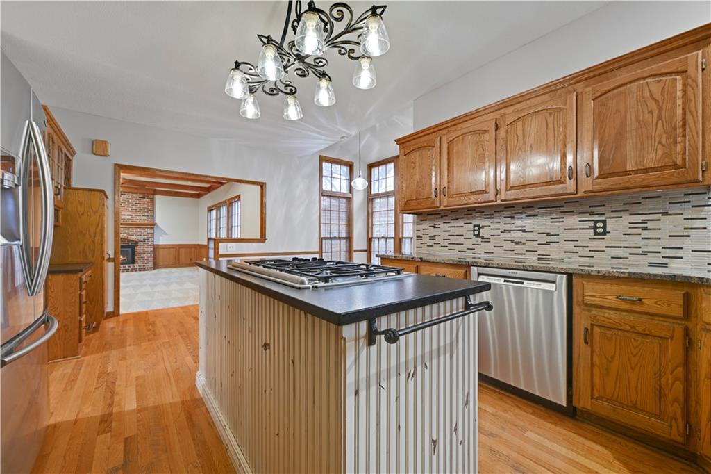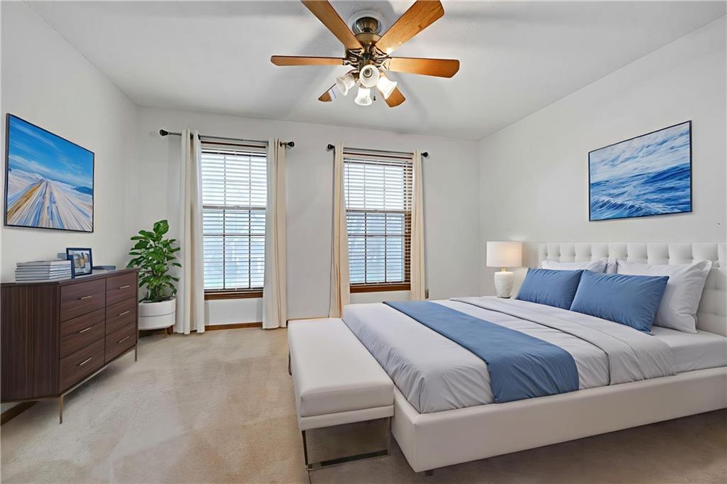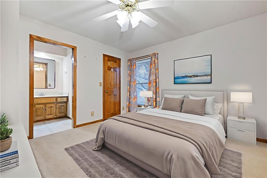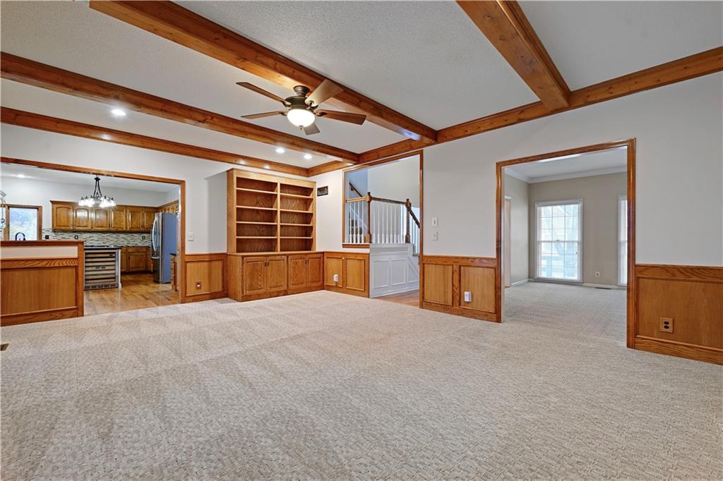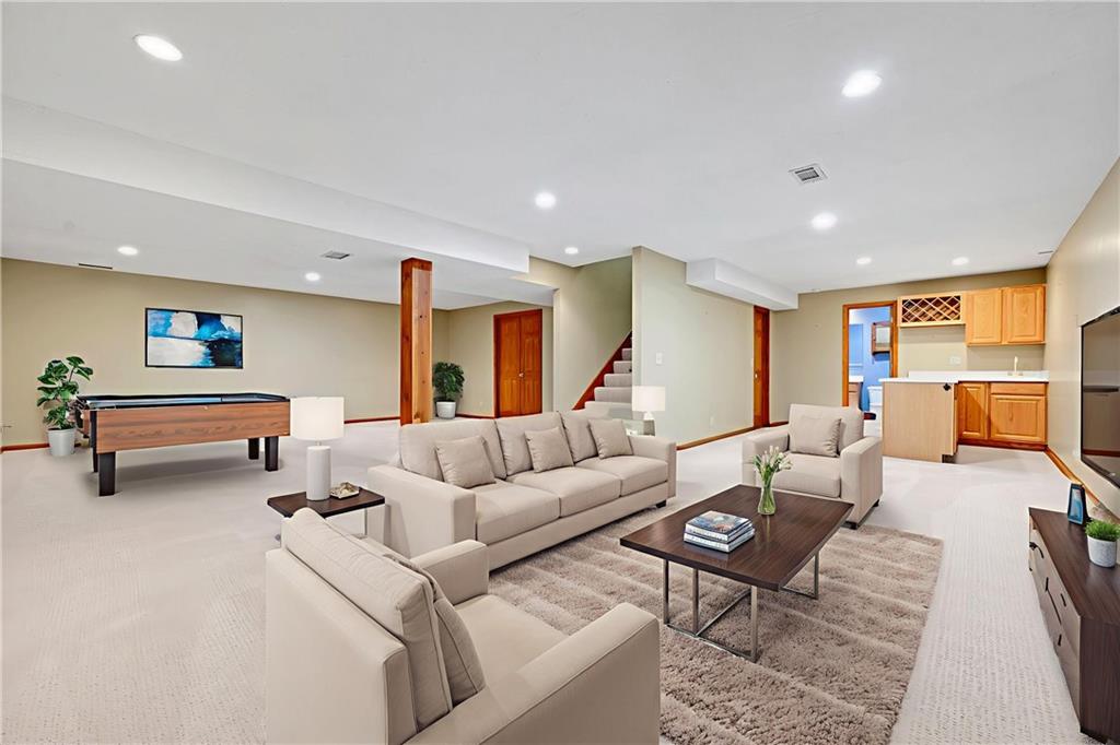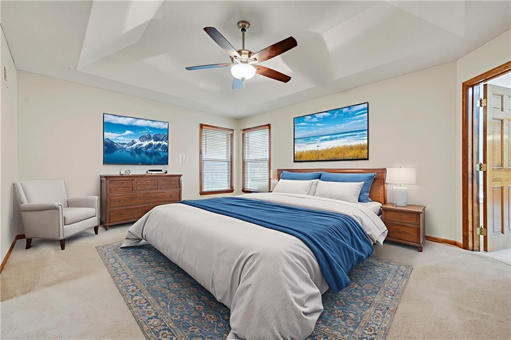 Open House Saturday, 11/22 from 2:00-4:00 PM and Sunday, 11/23 from 11:00 AM - 1:00 PM! Welcome home to this stunning 2-story tucked away on a quiet cul-de-sac in the highly desired Carriage Crossing neighborhood! Impeccably maintained by its original owners for 35 years, this residence shines with timeless charm, thoughtful updates, and undeniable pride of ownership. From the moment you arrive, the expanded front porch invites you to relax and enjoy your morning coffee in a peaceful, tree-lined setting. Inside, a two-story entry with elegant chandelier opens to a formal living room or office on one side and a charming dining room with beadboard detailing on the other. The cozy family room showcases rich wood paneling, warm carpeting, and a gas fireplace—an inviting centerpiece for gatherings. The spacious kitchen offers abundant cabinetry, stainless steel appliances, and a cheerful breakfast nook overlooking the backyard. A guest bath, mudroom, and laundry area complete the main level for everyday convenience. Upstairs, four generously sized bedrooms and three full baths provide room for everyone. The primary suite includes a sitting room—perfect for an office or reading nook—and a spa-like bath with dual vanities, jetted tub, and large walk-in closet. Each secondary bedroom has a walk-in closet; one enjoys a private en suite, while the others share a Jack-and-Jill bath with individual vanities. The finished lower level features a wet bar, full bath, and spacious rec room ideal for movie nights, game days, or kids’ hangouts. Outside, enjoy a fenced backyard with brick paver patio and a unique gravel lounging area perfect for grilling, play, or relaxation. Located in the top-rated Blue Valley School District, Carriage Crossing offers a welcoming community with neighborhood pool, friendly neighbors, and quick access to shops, restaurants, medical care, and highways. This exceptional home truly checks every box—don’t miss your chance to make it yours!