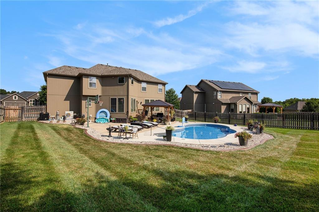 Stunning Two Story with updates throughout including New AC and Furnace installed in 2024, Exterior Painted in 2023, and Re-Insulated Attic! Offering plenty of space for entertaining family and friends with an open main floor plan and great backyard with a heated in-ground pool and large patio space. Walk in through the front entry and you will see a formal dining space surrounded by elegant columns. The kitchen features Knotty Adler cabinets, granite countertops, a pantry, and main floor half bath. Upstairs has the primary suite with dual vanities, a soaking tub, tile shower, and walk in closet along with three additional bedrooms, two full baths, a designated laundry room, and loft. Basement is perfect for additional family room or workout space with a full bath and storage room. Come check out this well maintained home ready to be a retreat for your family!