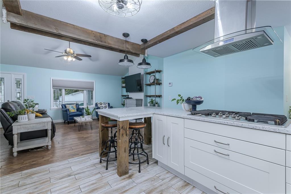 COMPLETELY UPDATED AND MOVE-IN READY, THIS STUNNING 3-BEDROOM RANCH BLENDS MODERN COMFORT WITH SMART, ENERGY-EFFICIENT LIVING! Thoughtfully renovated from the ground up, the home features all-new plumbing, electrical (including a new main line), windows, flooring, kitchen, and baths—plus a new metal roof added last year. With 36 solar panels for low energy costs, this home is as practical as it is beautiful. The bright, open floor plan offers vaulted ceilings, a cozy fireplace in the living room, and a chef’s kitchen with a gas cooktop, built-in appliances, and custom countertops. The primary suite impresses with vaulted ceilings, double vanities, a spacious walk-in shower, and dual walk-in closets. A sunny enclosed porch opens to a private backyard with a gazebo, garden space, and an above-ground pool with a new liner—perfect for summer relaxation. The detached garage provides extra storage with an upstairs loft, all on a well-maintained corner lot with privacy fencing and a convenient location close to everything.