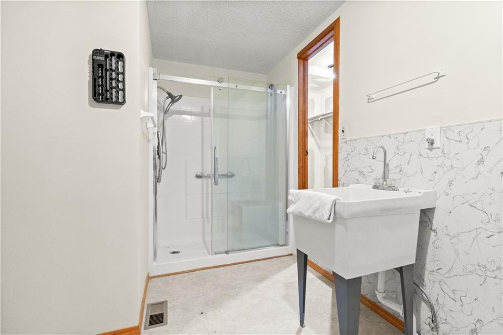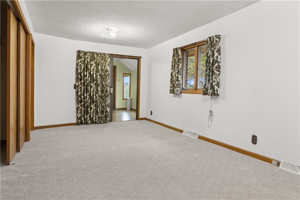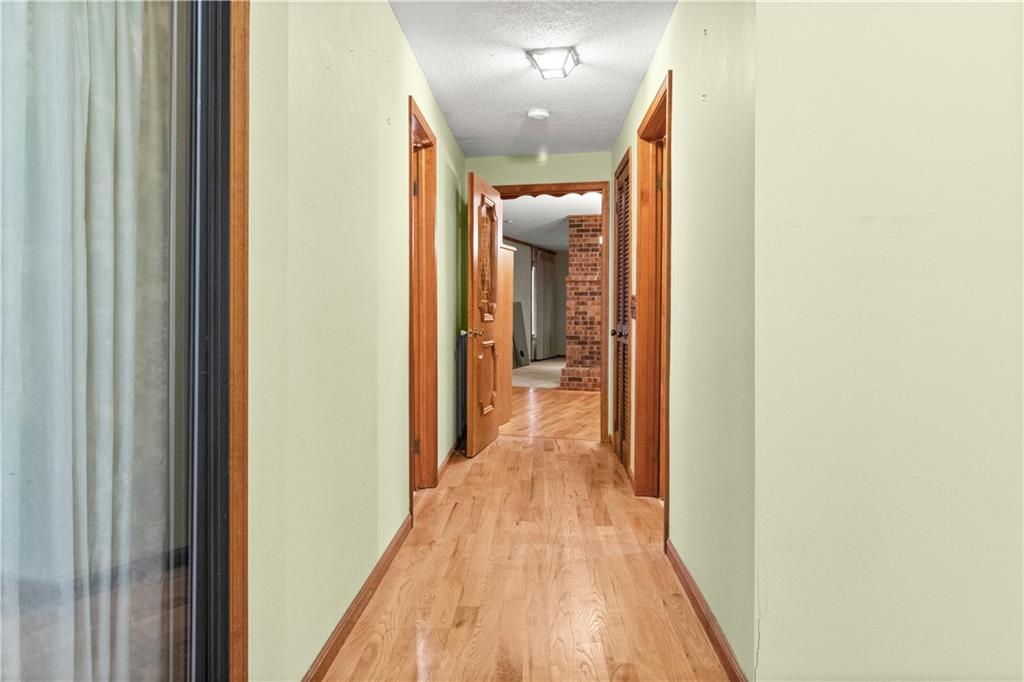 5-Acre Private Estate with Classic Farmhouse Charm! Discover the tranquility of country living with this classic two-story residence, perfectly situated on 5 expansive acres of lush, rolling green space. The home features a timeless exterior defined by rich red brick construction and a dark shingle roof, accented by charming dormer windows that hint at the generous living space inside. The sprawling acreage offers privacy, beautiful views, and endless potential for gardening, recreation, or equestrian pursuits, framed by mature trees and fencing. Traditional Interiors with Warm Wood Accents! Step inside to find voluminous, light-filled rooms with an abundance of original, character-filled details. The main level features a large living area centered around an impressive, floor-to-ceiling brick fireplace, providing a cozy focal point and architectural separation from the kitchen. This area is finished with soft, neutral carpeting and contrasting natural wood trim. The heart of the home is a wide-open kitchen and dining area boasting beautiful hardwood flooring. It is appointed with ample natural oak cabinetry and features a classic tiled backsplash, ready for the chef's touch. A built-in oven and microwave unit completes the functional layout. Upstairs offers substantial bedrooms and a unique bonus space. A standout feature is this large vaulted room, which showcases stunning exposed wood beams across the ceiling, giving it a dramatic, rustic-chic atmosphere—perfect for a studio, or recreation room. Additional bedrooms are generously sized, featuring plush carpeting, bright windows, and the potential for personalization. This property provides the perfect blend of private, expansive outdoor living and a warm, classic interior with excellent "bones" awaiting your personal upgrades and style!