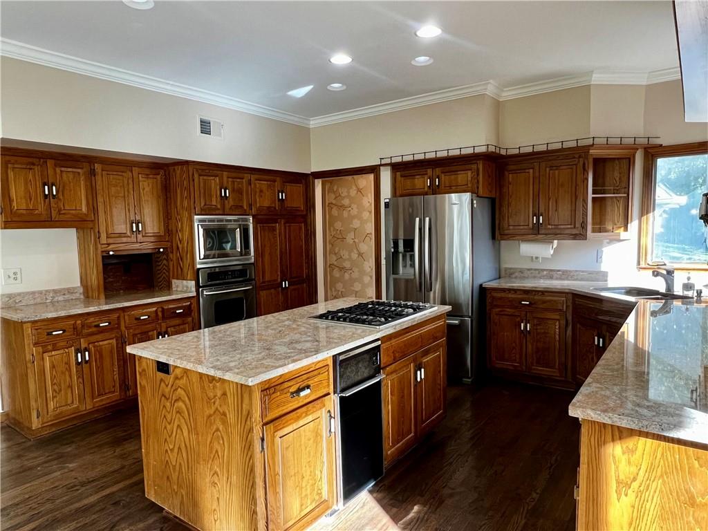 Fabulous Saul Ellis custom built 2-story home in cul-de-sac. This house is perfect for entertaining with its very generous sized rooms. Wet bar with built-ins in the LR along with a gas log fireplace. Dining room with more built-ins. Beautiful panelled library with lots of book shelves. Warm and inviting kitchen and hearth room with gas log fireplace. Two half baths on first floor. Master bedroom and three other bedrooms on 2nd floor all with walk-in closets. Great patio and spacious backyard. This home is ready for your vision of paint colors and carpet.