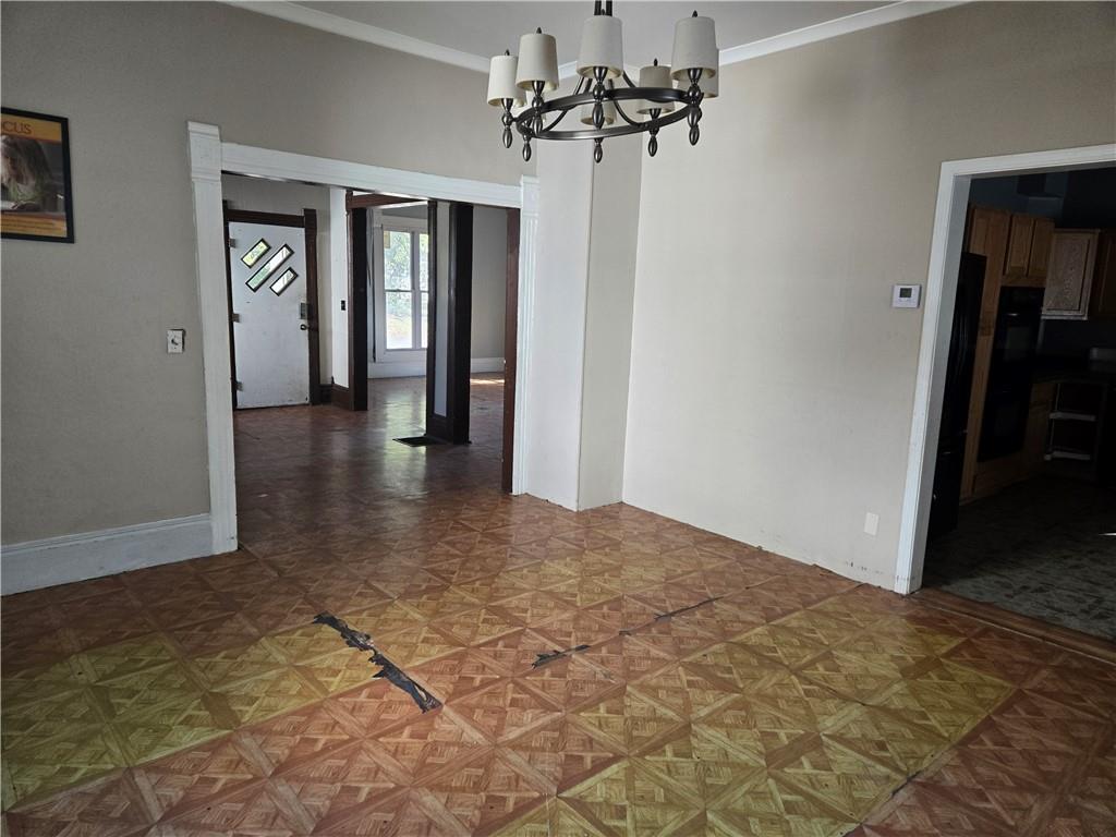 This 4 bedroom, 1½ bath home was used as a rental (cheaper than dorm rentals). Open foyer highlights beautiful stairway/woodwork and opens to formal dining and living room. There is original hardwood flooring underneath the linoleum and carpeting. The four bedrooms are all upstairs with a 4 square landing between the bedrooms and the full bath. The kitchen was remodeled a few years ago, black double sink and newer cabinets, a built-in gas downdraft cookstove and double electric oven, all appliances stay! Private driveway to a double car detached garage and a nice big backyard. This home is priced to sell, with all new windows so with some paint, flooring and a little TLC, what a great return on your investment with this being a college town, rentals are well sought after!