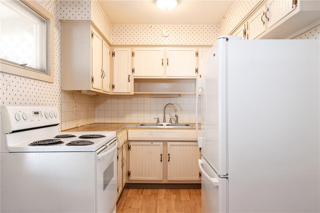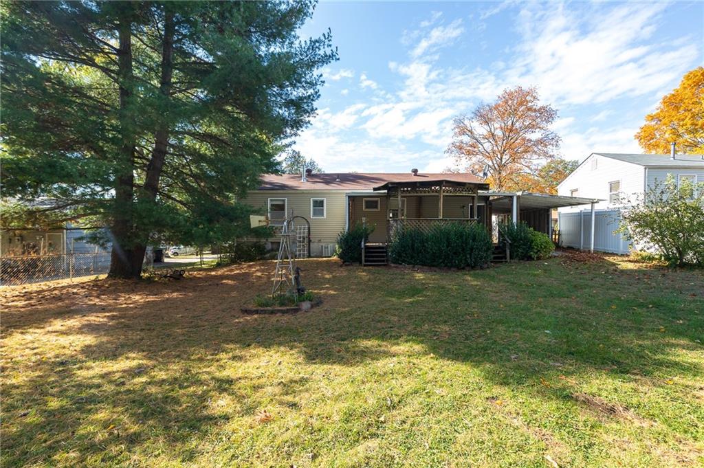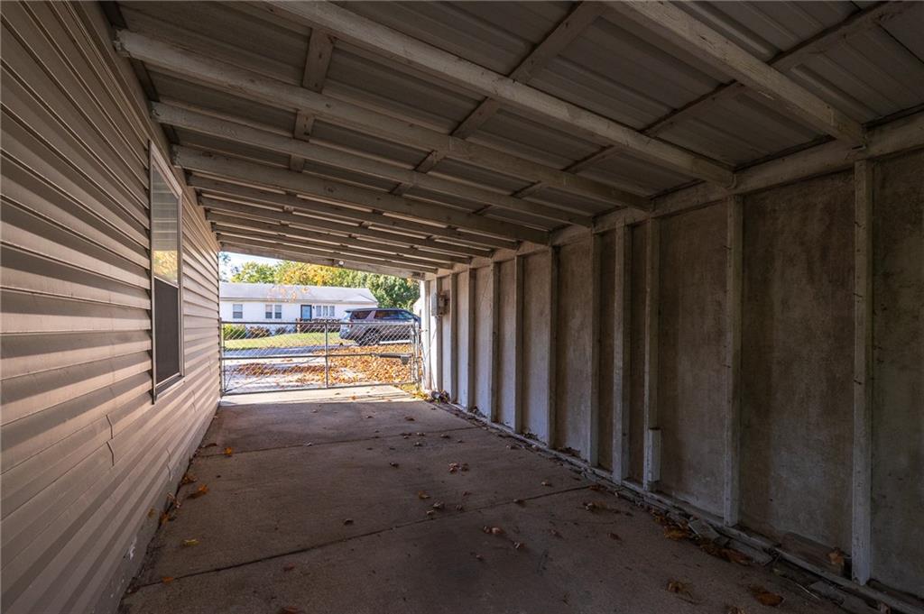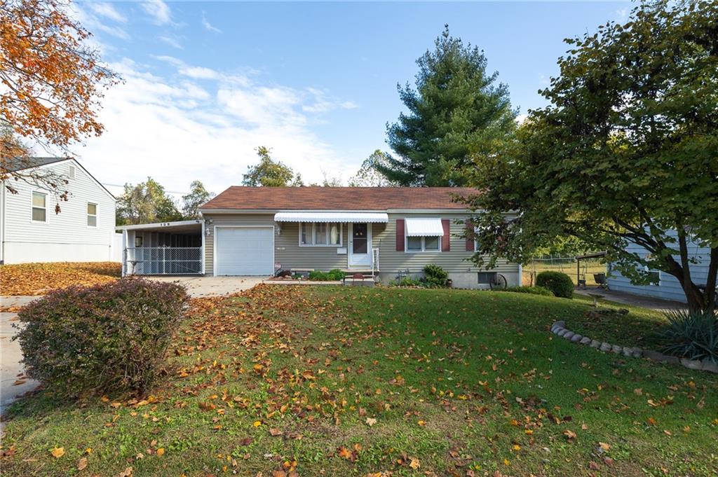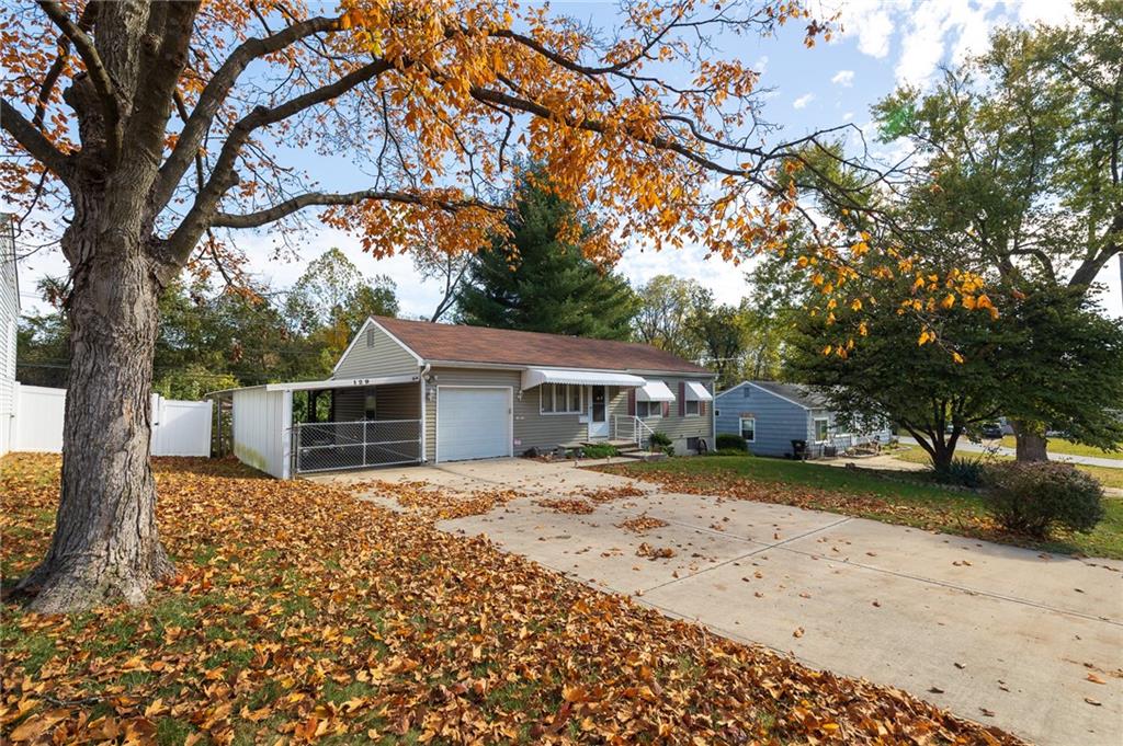 Welcome home to this vinyl siding ranch featuring 3 bedrooms with beautiful hardwood floors and new carpet (installed October 2025) in the hall and living room. The single-car garage is complemented by an attached carport with an electric gate, offering convenience and security. Enjoy main-level living with laundry conveniently located in a bedroom closet, plus an additional hookup available in the spacious 840 sq. ft. basement—ready to be finished for extra living space, a workshop, or storage. Step outside to your large covered deck, perfect for relaxing or entertaining, overlooking a fenced backyard with mature trees that provide shade and privacy. A deep extra driveway on the north side allows easy access to the back door, while the shed on a concrete pad offers the ideal space for a workshop or lawn equipment storage. With its low-maintenance exterior, flexible living spaces, and private outdoor setting, this home is move-in ready and full of potential—perfect for first-time buyers, downsizing, or anyone looking for comfortable one-level living!