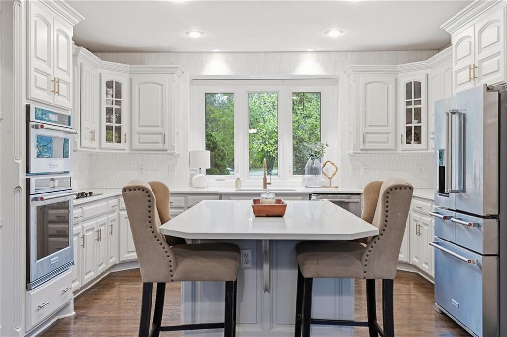 Experience refined living in this beautifully updated 1.5-story, 5-bedroom, 5.5-bath home situated on a premier golf course. Designed for comfort and sophistication, this residence features two spacious primary suites, each with its own private ensuite bathroom—ideal for guests or multi-generational living. An inviting open floor plan showcases modern updates, abundant natural light, and seamless indoor-outdoor living. The gourmet kitchen boasts high-end finishes and flows effortlessly into the dining and living areas—perfect for entertaining. Step outside to enjoy stunning golf course views from the private patio, ideal for morning coffee or evening gatherings. Additionally there is a fully equipped basement kitchen that adds exceptional convenience for entertaining or extended stays. Combining luxury, function, and warmth, this gorgeous 1.5-story home offers an exceptional opportunity for elegant golf course living.