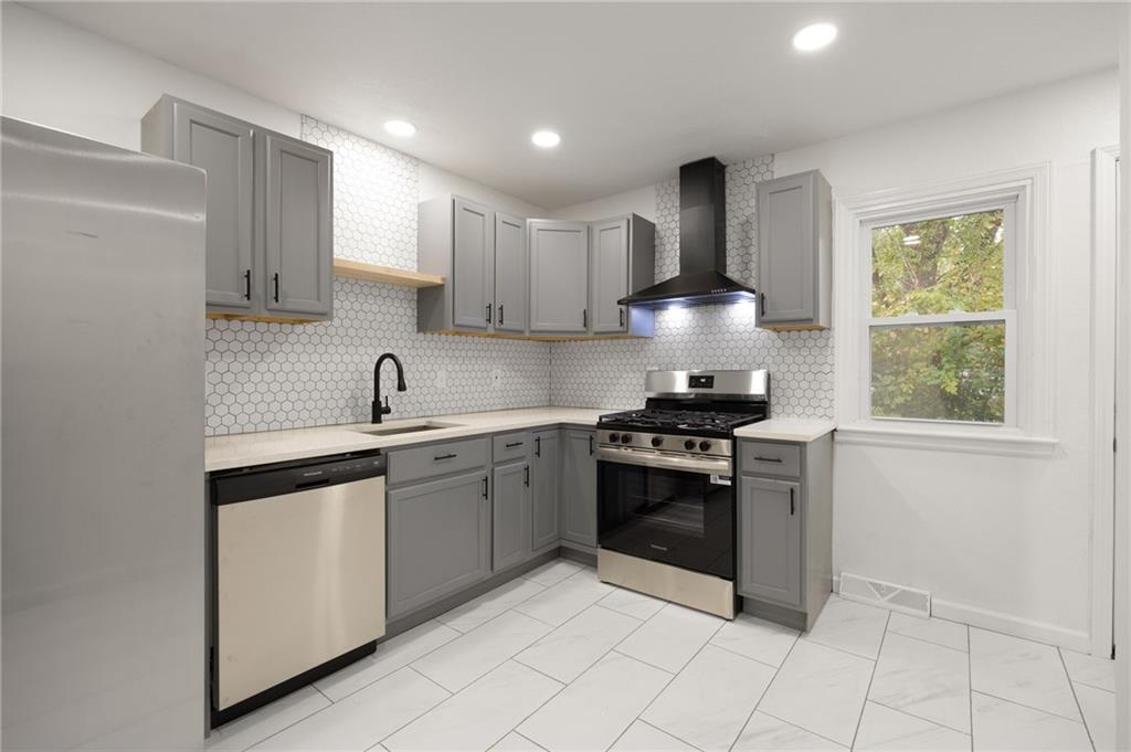 Imagine stepping into your first home with zero stress and zero renovation worries. This fully renovated and Certified Pre-Inspected 3 bedroom, 2 bath ranch offers peace of mind and modern living at a price point that makes homeownership truly attainable. Located on a corner lot with sidewalks and no HOA, this move-in ready Kansas City home has been completely updated so you can simply move in and start enjoying your space. Major improvements include a new roof, new HVAC, new windows, updated electrical and plumbing, new flooring, paint, lighting, and modern finishes throughout. The kitchen feels like a model home with quartz countertops, tile backsplash, stainless steel appliances, gas range, and contemporary vent hood. The living room is warm and inviting with an electric fireplace and plenty of natural light. The finished lower level provides two additional flex rooms perfect for a home office, gym, hobby space, or guest area, plus a bonus living space and dedicated laundry area. Outside, you’ll enjoy a one-car garage and extended driveway with room for multiple vehicles, a work truck, camper, or boat. With no HOA restrictions, you maintain flexibility and freedom. This home sits in a central KC location offering quick highway access and convenient drives to downtown, stadiums, parks, dining, and shopping. If you’ve been searching for an affordable, move-in ready home in Kansas City with modern finishes, multiple living spaces, and no repair list waiting for you, this is the opportunity. Ideal for first-time buyers, this turn-key home delivers value, comfort, and confidence — all under $220,000. Your first home doesn’t have to be a fixer upper. Here, the work has already been done for you. Move in, settle in, and enjoy the feeling of owning a home that is truly ready from day one.
