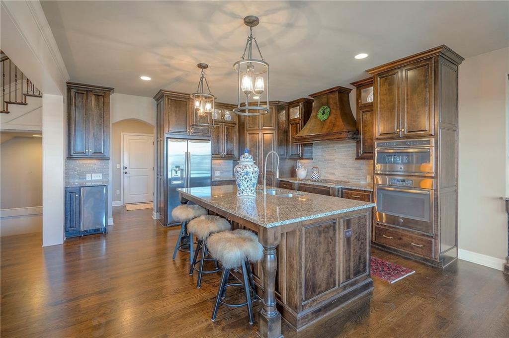 Welcome to 3301 W 157th Street, a 5-bedroom, 5.5-bathroom 1.5-story home in the WatersEdge community where thoughtful design and everyday luxury meet seamlessly. From the vaulted ceilings to the striking floor-to-ceiling stone fireplace, every detail sets a refined and welcoming tone. The main floor features a spacious primary suite with a large walk-in closet and spa-like bath, a private office just off the entry, and a chef’s kitchen complete with a hidden walk-in pantry. A conveniently located half bath, laundry room, and mudroom with locker-style storage and a built-in bench make everyday living simple and efficient. Just off the main living area, a covered deck offers the perfect setting for entertaining or relaxing outdoors. Upstairs, a loft overlooks the main level and provides flexibility as a second living area, playroom, or creative retreat. Each of the three upstairs bedrooms has its own full en-suite bathroom, offering privacy and comfort for everyone. The finished walkout basement is built for entertaining, featuring a wide open game area perfect for a pool table, a private wet bar ideal for poker nights or football gatherings, and a spacious TV sitting area with access to a covered patio and backyard firepit. The fifth bedroom and a full bath are also located on this level, creating a private guest space or multi-generational living option. Located in the Blue Valley School District, this home offers a complete package of comfort, functionality, and luxury living.