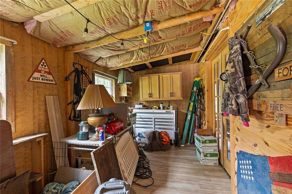 Welcome to your own private retreat on 20 beautiful acres! This log-sided manufactured home is nestled among rolling hills and mature timber. The land is mostly wooded, with a seasonal creek that runs at the bottom of the first hill — flowing during heavy rains. The property is partially fenced with barb wire along the sides and back. Step inside to find 3 spacious bedrooms and 2 full bathrooms. A formal living room greets you at the front of the home, leading into an open-concept kitchen and cozy family room. Home has newer vinyl plank tile. The pellet stove adds warmth and charm while helping reduce propane costs during the colder months. There is a central all-in-one electric heating and cooling system as well.. The home also features a durable metal roof for long-term peace of mind. Enjoy the outdoors from the large back deck, part of which is enclosed and currently used as a small workshop. Additional features include a 30-amp RV hookup, a second septic system near the campsite area, and a blue connex container with its own 200-amp electrical service—perfect for storage or future expansion. Whether you're looking for a full-time residence, weekend getaway, or hunting basecamp, this property has endless potential. This property qualifies for free deer tags every year.