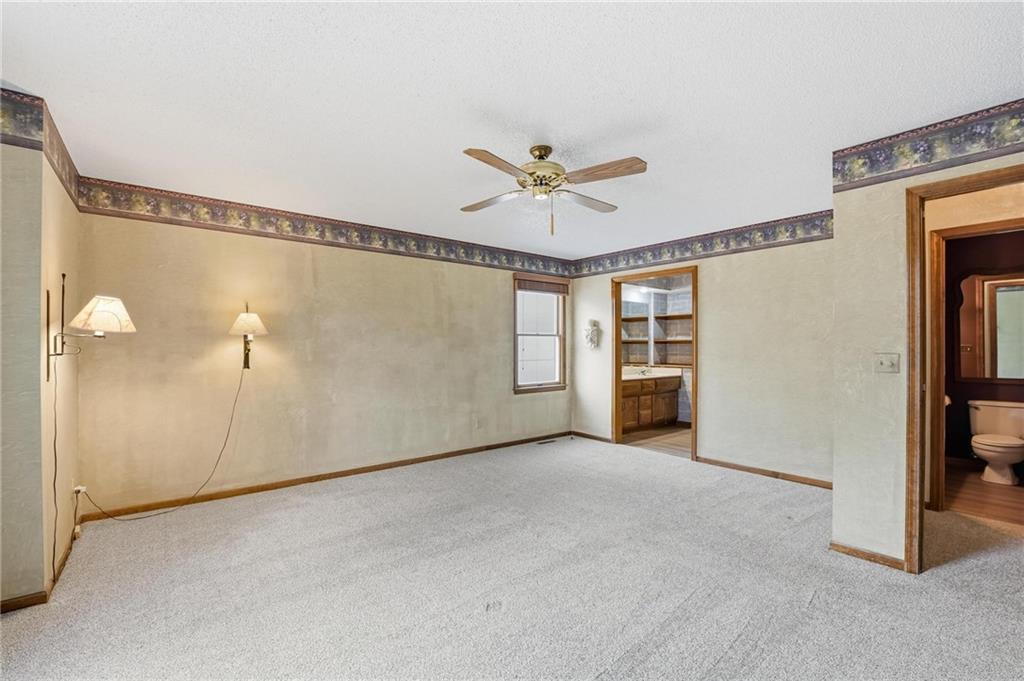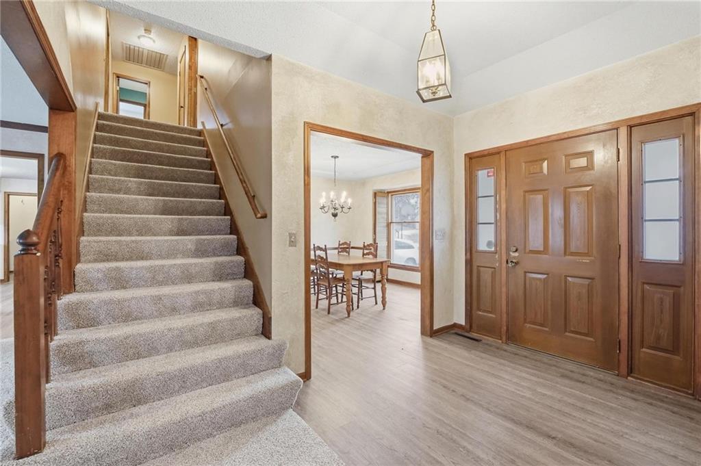 Well-cared for in Amazing Heatherwood Neighborhood! Main level primary suite with plenty of room for everything you need - includes walk-in closet, dual vanity, separate shower and tub. Formal dining room, Living room and kitchen are spacious with perfect setup to entertain guests. Main level laundery room. Additional bedrooms upstairs. Basement is unfinished, but dry and solid - so use your imagination! Newer roof, New HVAC with humidifier and hot water heater. New carpet. You will not be disappointed!