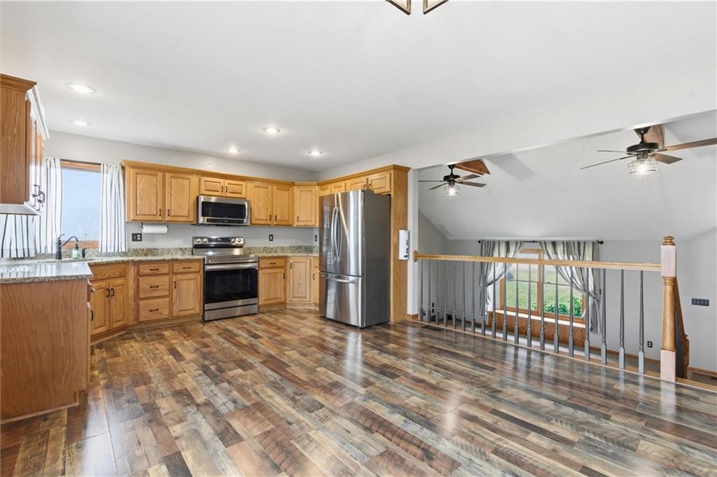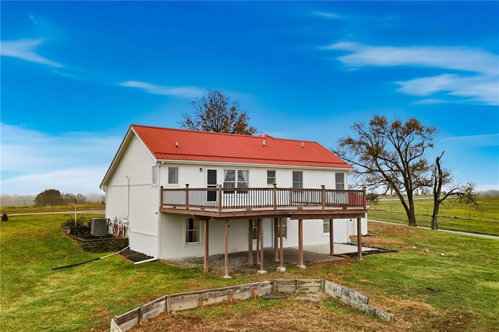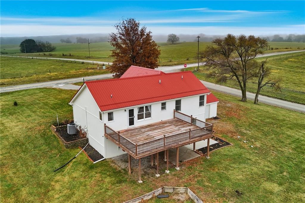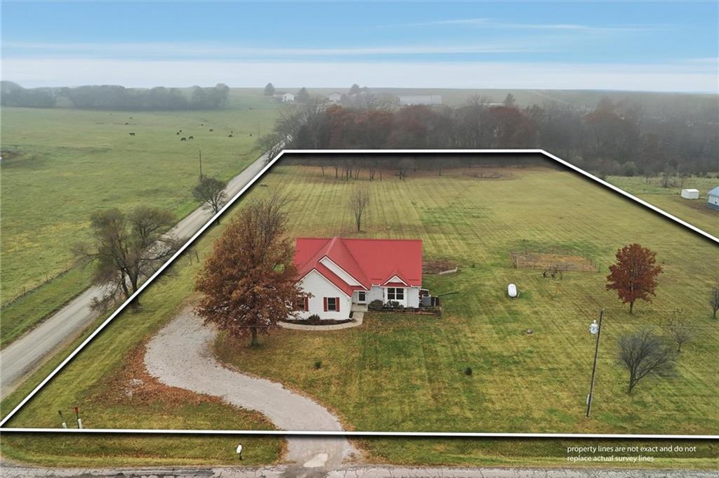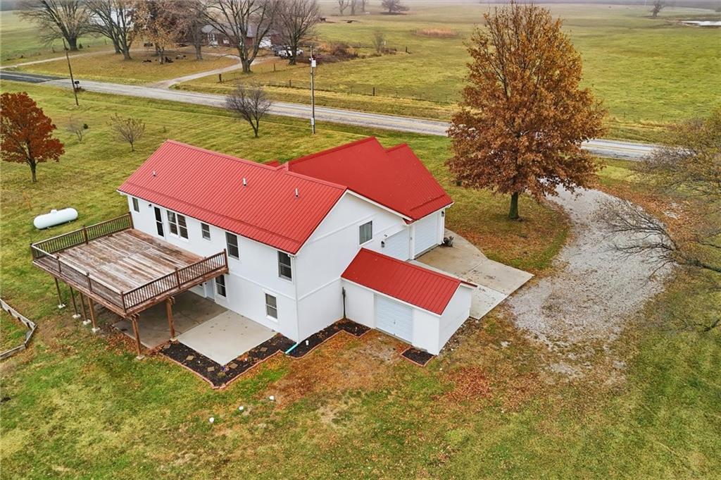 Welcome home to your country retreat on 4.92 picturesque acres! This front-to-back split offers a perfect blend of modern comfort and peaceful rural living, with a metal roof, three garages, and panoramic country views in every direction. From the vaulted ceilings and open living space to the oversized deck overlooking rolling acreage, every detail invites you to relax and enjoy the serenity of country life. The main level welcomes you with a bright living room, vaulted ceilings, and natural light that flows into the upper-level kitchen and dining area. The kitchen offers abundant cabinetry, pantry storage, and access to the expansive rear deck—perfect for entertaining or quiet mornings watching wildlife. Down the hall is a convenient half bath and a spacious primary suite featuring a private full bath and an oversized walk-in/step-up closet designed for functionality and charm. The lower level provides a cozy family room that walks out to the patio, plus two additional bedrooms and a full bath—ideal for guests or family separation. Continue to the sub-basement for additional storage, hobby space, or workshop options. A two-car side-entry garage provides direct main-level access, while a third utility garage serves perfectly for equipment, tools, or recreational vehicles. Enjoy a corner lot setting with plenty of room for future outbuildings, gardening, or a small hobby farm. Whether you envision adding a barn, expanding outdoor living, or simply enjoying the privacy and space, this property is built for flexibility and long-term value. Solid construction, a durable metal roof, and thoughtful design make this an ideal opportunity for your next chapter of country living.