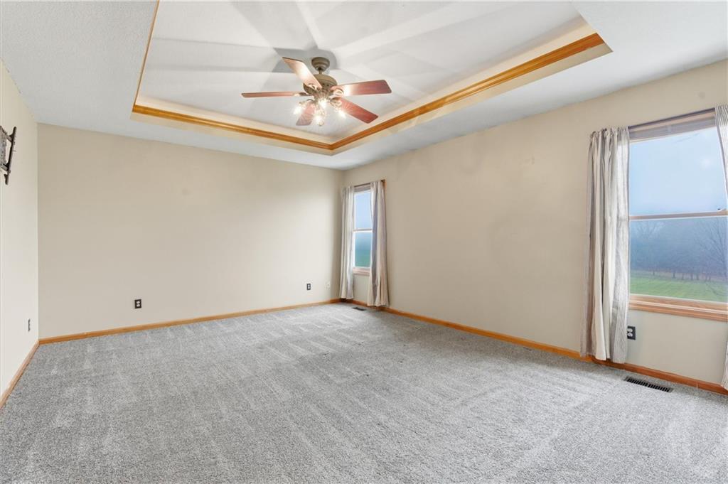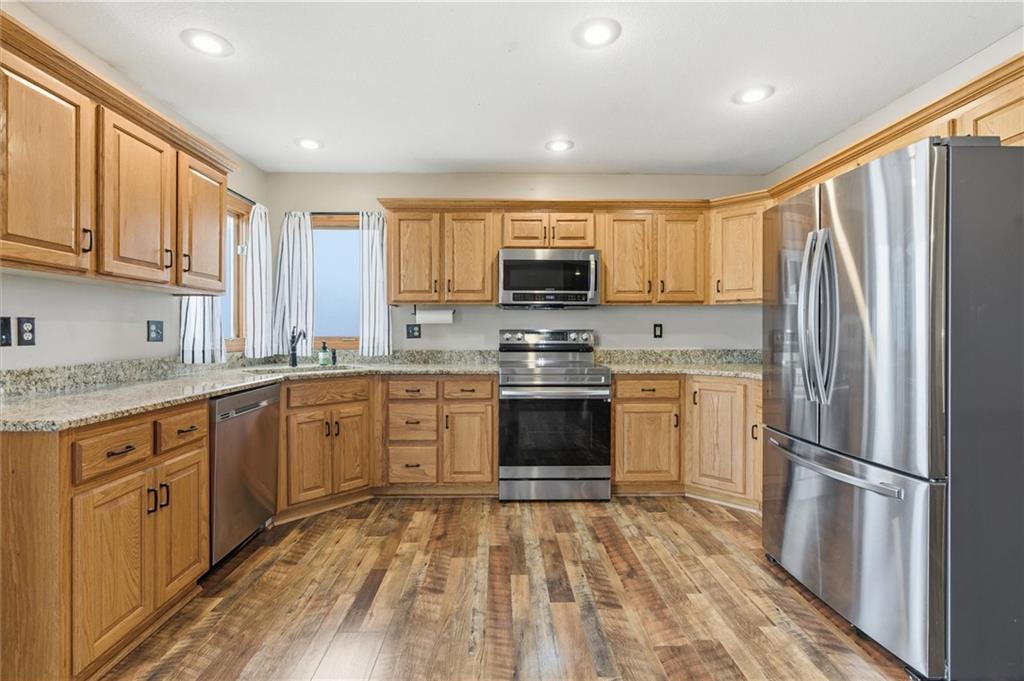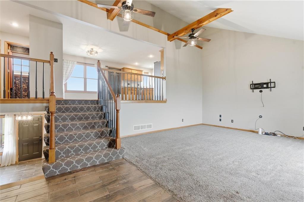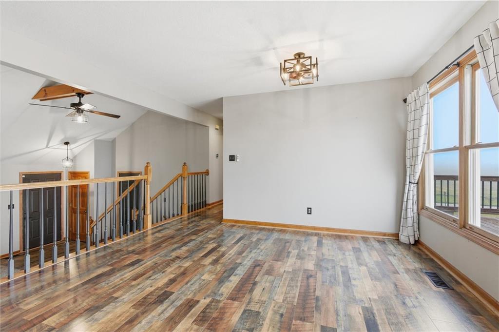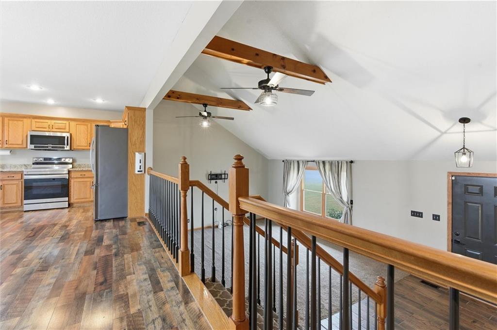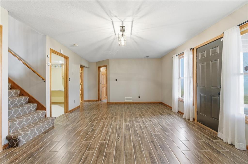 Welcome home to your country retreat on 4.92 picturesque acres! This front-to-back split offers a perfect blend of modern comfort and peaceful rural living, with a metal roof, three garages, and panoramic country views in every direction. From the vaulted ceilings and open living space to the oversized deck overlooking rolling acreage, every detail invites you to relax and enjoy the serenity of country life. The main level welcomes you with a bright living room, vaulted ceilings, and natural light that flows into the upper-level kitchen and dining area. The kitchen offers abundant cabinetry, pantry storage, and access to the expansive rear deck—perfect for entertaining or quiet mornings watching wildlife. Down the hall is a convenient half bath and a spacious primary suite featuring a private full bath and an oversized walk-in/step-up closet designed for functionality and charm. The lower level provides a cozy family room that walks out to the patio, plus two additional bedrooms and a full bath—ideal for guests or family separation. Continue to the sub-basement for additional storage, hobby space, or workshop options. A two-car side-entry garage provides direct main-level access, while a third utility garage serves perfectly for equipment, tools, or recreational vehicles. Enjoy a corner lot setting with plenty of room for future outbuildings, gardening, or a small hobby farm. Whether you envision adding a barn, expanding outdoor living, or simply enjoying the privacy and space, this property is built for flexibility and long-term value. Solid construction, a durable metal roof, and thoughtful design make this an ideal opportunity for your next chapter of country living.