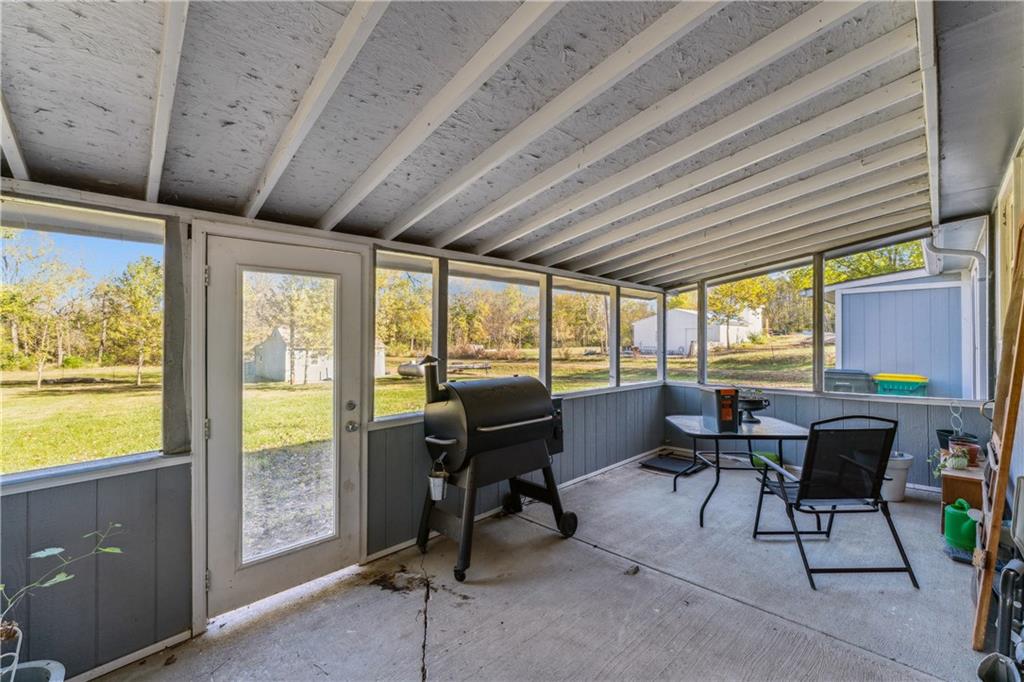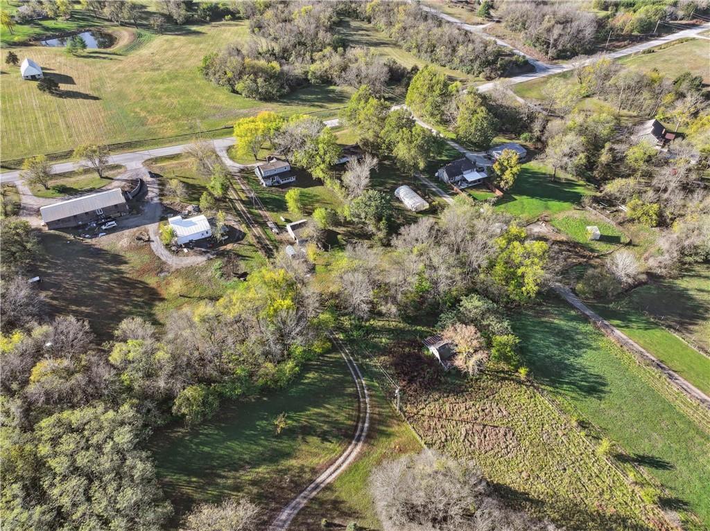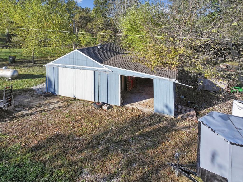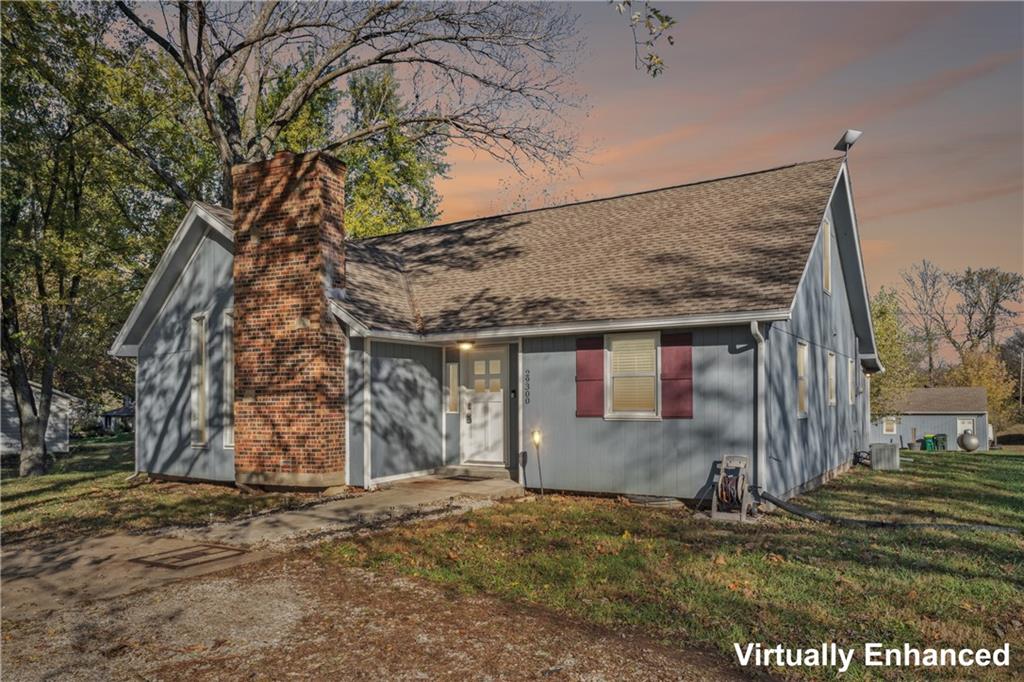 Amazing MOVE in ready acreage home!! You can not find a home in Johnson County on almost 5 acres at this SMOKING HOT price. This home features a Main Floor Primary Suite and Main floor Laundry!! True one floor living if needed. Home was remodeled a couple years ago and its amazing!! Family room has beautiful fireplace, Vaulted ceilings and beautiful hardwood floors. Formal Dining room open to family room area its HUGE for all your family dinners. Kitchen is perfect for all your entertaining needs, granite, tons of cabinets, Large eat in area also! Upstairs features 2 HUGE bedrooms and full bath. Both bedrooms have MASSIVE walk in closets. Back of the house has a large covered/screened patio that wraps around the home. Outbuilding has enough room to park 3 cars or tons of space for all your projects. Acreage has lots of trees and Openings thru out. Country living is ready for you!