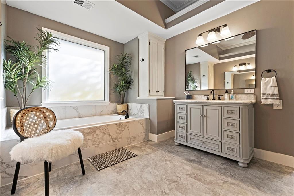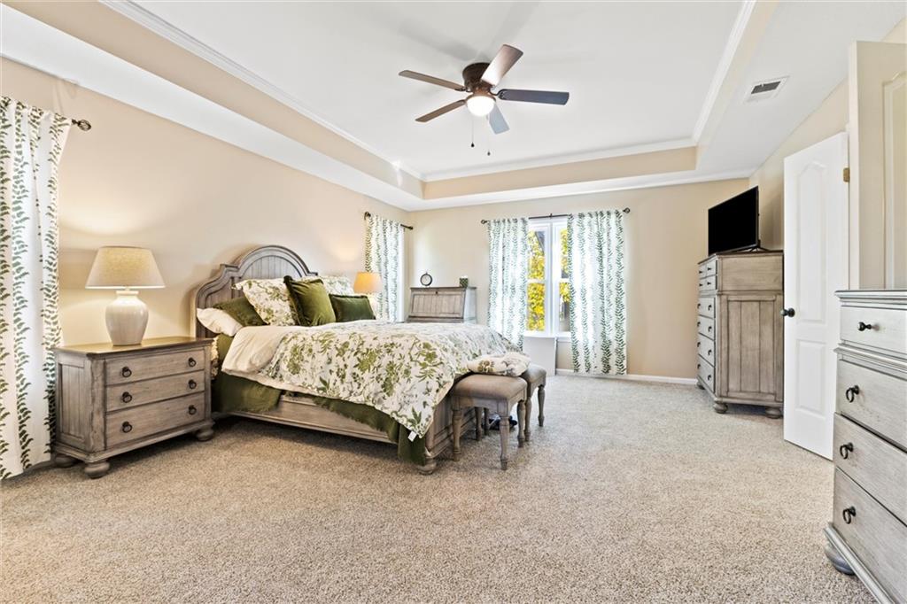 This homeowners job transfer is your lucky day. Purchased only a year and a half ago, the kitchen received a beautiful REMODEL and the PRIMARY BATHROOM was GUTTED and renovated as well, leaving it to be summed up with 1 word, STUNNING! New plush carpet was just installed as well as all new interior paint and light fixtures. This sought after 2 story floorplan in Lakewood, has a spacious living room w fireplace on the main w tons of windows, home office w French Doors, hearth room just off the fully renovated kitchen, a formal dining room, and main level laundry room! Heading upstairs the Primary Bedroom has an additional room some might use as an office or nursery. As you walk in your newly remodeled bathroom, you'll find high-end finishes, including a walk-in shower w glass doors, brand new tub, and double vanities for a spa-like experience. You'll love the spacious walk-in closet that was just painted as well. If you're looking for room to spread out, then don't miss this massive basement! Huge Rec Room w wet bar, large 5th Non-Conforming Bedroom w walk-in closet. WALKOUT to your covered patio perfect for a Hot Tub or relaxing w a book! The backyard is almost a half acre, fenced w trees providing shade and privacy. Lakewood has a ton of amenities being a perfect match whether you're single or a have a growing family! Check out their website w all the AMENTITIES at https://lpoa.com/.