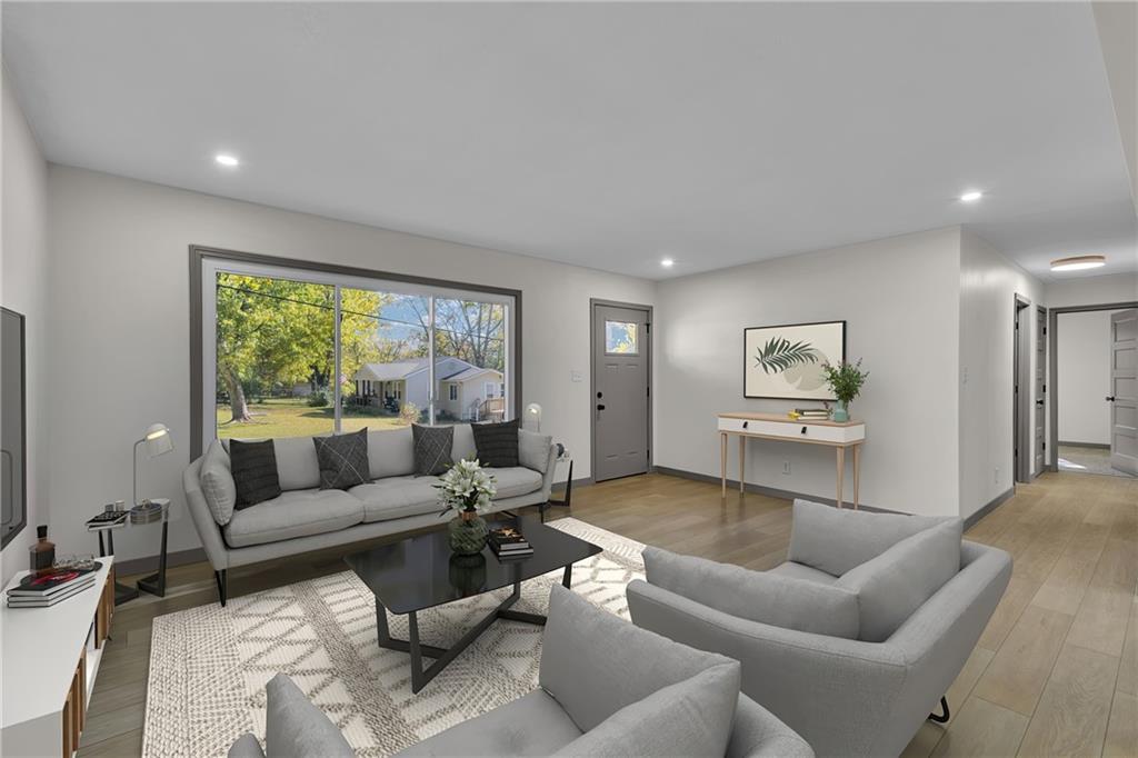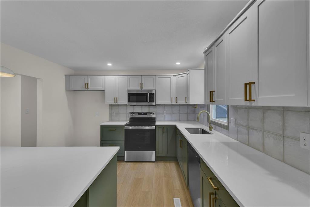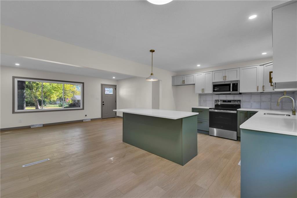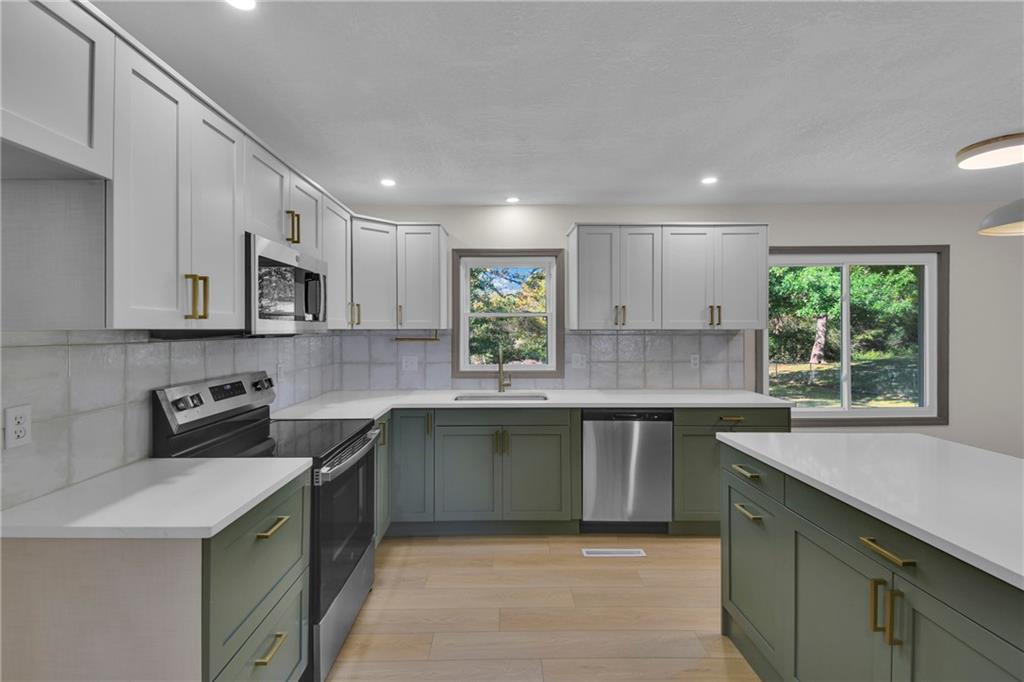 Completely renovated 4-bed, 2-bath home on a 0.71-acre lot in Pleasant Valley. This 2025 update blends quality materials with modern design across 2,267 sq ft of finished space. Main level features 1,144 sq ft with new cabinetry, quartz countertops, recessed LED lighting, and durable LVP flooring. Finished walk-out basement adds 1,123 sq ft including a 4th bedroom and flex living area with natural light. Both attached and detached garages offer ample parking and storage. Updates include new windows and appliances (2025). Large 0.71-acre lot offers room for future outdoor projects or garden space. Easy access to I-35, Liberty retail corridor, and parks within 1 mile. A turnkey option for buyers seeking move-in-ready space in Pleasant Valley with modern finishes and functional layout.
