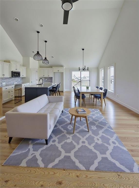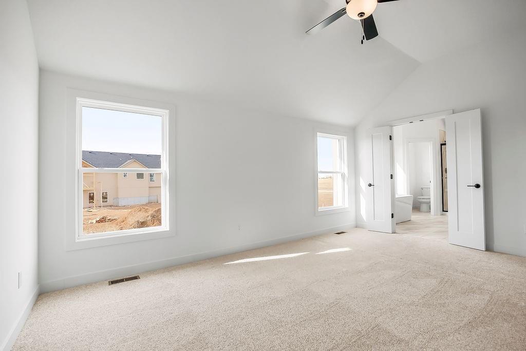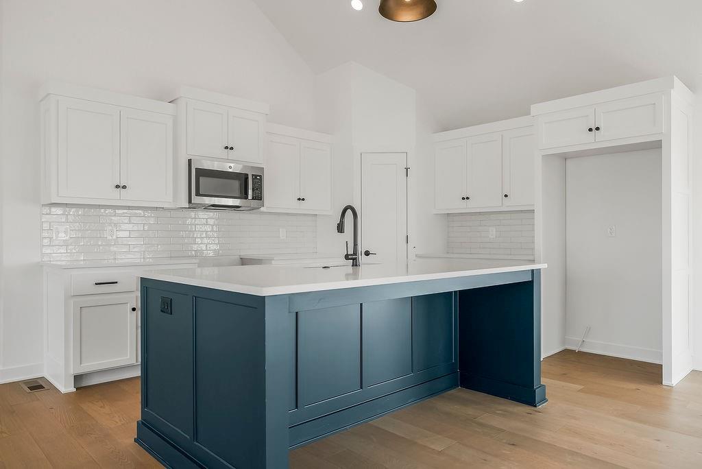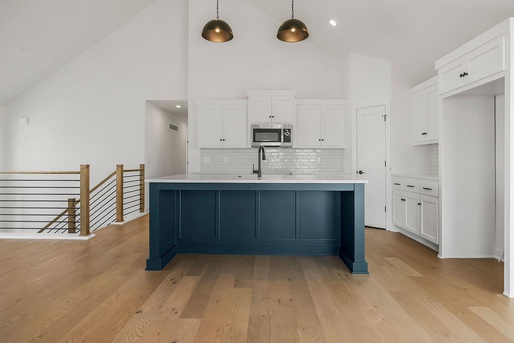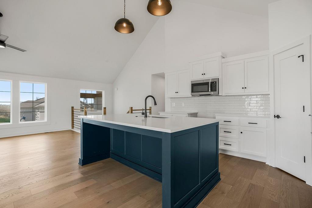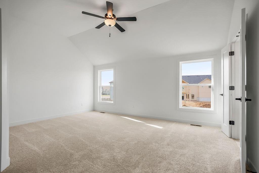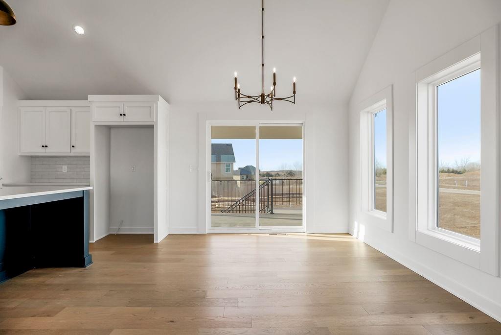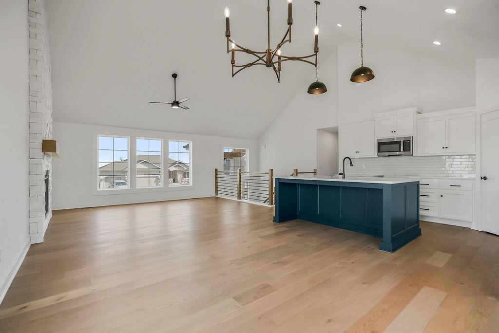The William plan by L/M Homes. This spacious, open and airy plan checks all of the boxes! Beautiful great room with fireplace, 16' vaulted ceilings, upgraded trim detail and hardwoods. Beautiful kitchen with oversized island, pantry and quartz tops. Primary bedroom with walk in closet and vaulted ceilings. Master bath with double vanities, soaker tub and shower. 2 other generously sized secondary bedrooms on the main floor as well as laundry room. Lower level with mud bench and cubbies. Rec / living room and additional bedroom and bathroom. Extra deep 3 car garage, covered deck, great curb appeal and sitting on a great flat yard! (PICTURE ARE OF A PREVIOUS MODEL)