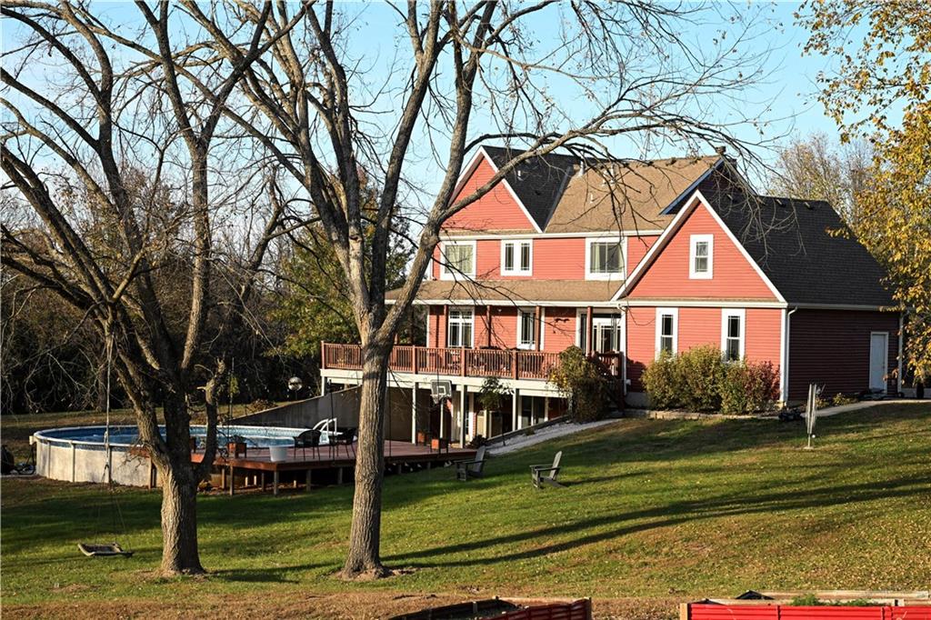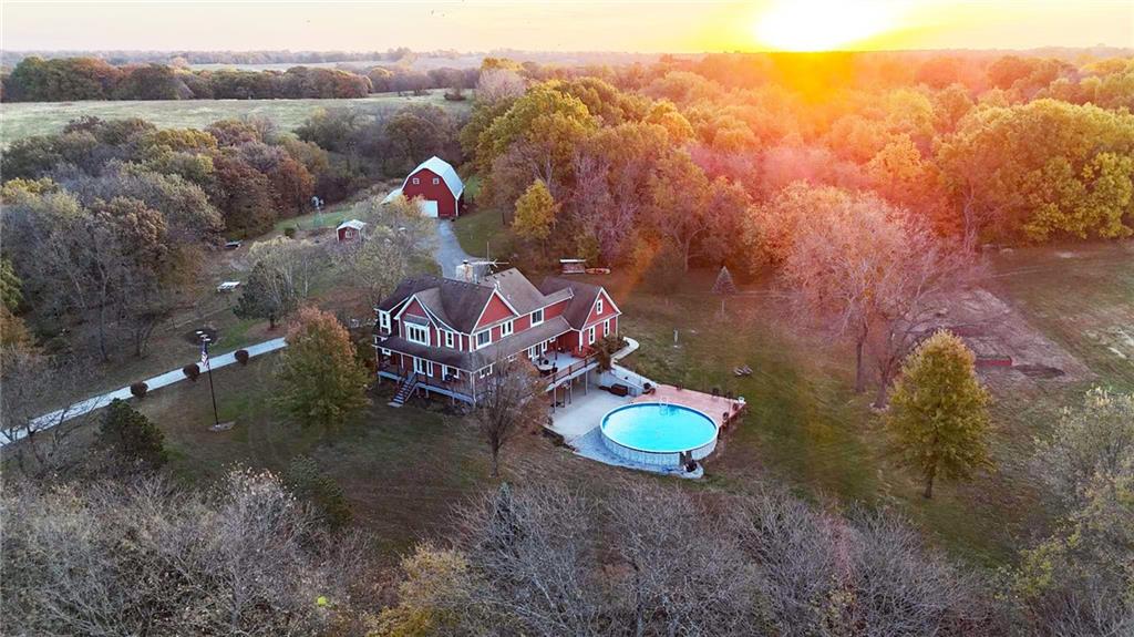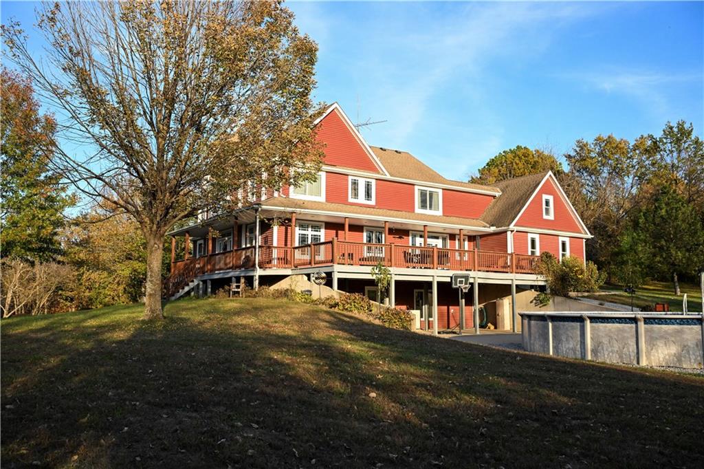 Just on the market! A Rare find on almost 20 acres! A private piece of heaven on Earth! A beautiful 5 bedroom/3.5 bath two story home with finished basement. Has a gorgeous stone fireplace that invites one to cozy up in the winter. The house is encircled with a wonderful wrap-around porch with incredibly peaceful views of your property. An above-ground pool with deck and a two-story red barn also grace the property, as well as a chicken coop. Raised-bed garden and fruit orchard will bring years of enjoyment. All of this on almost 20 acres, about a mile south of Plattsburg. Army corps land across the road. Less than a mile to north entrance of Smithville lake - makes for great kayaking! Location is super ideal with the airport, Kansas City, and Liberty 35 min away, Kearney is 20 min away, and St Joseph is 45 minutes. Owner/agent. Priced $7000 under recent appraisal of $867,000 - it is sure to sell quickly!