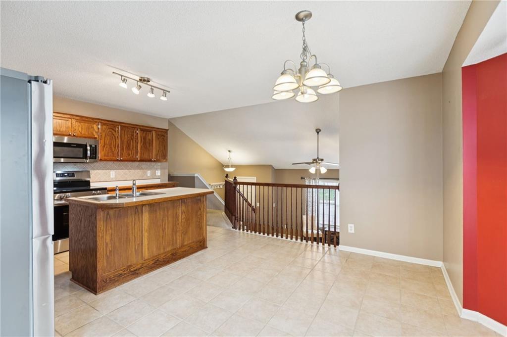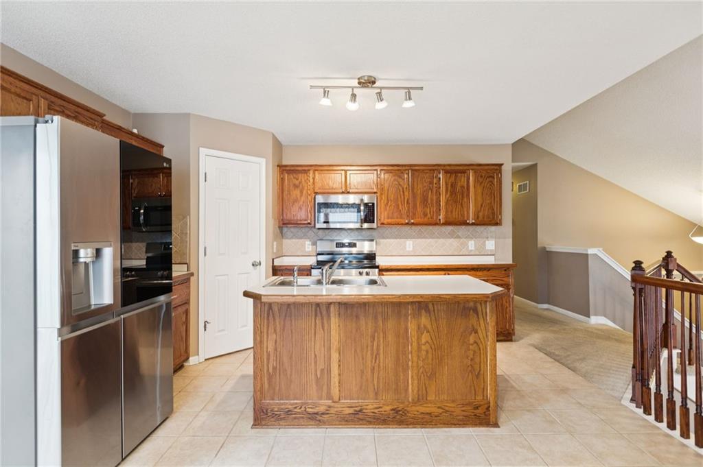 This is the ONE you've been looking for! Walk in and immediately admire the tall ceilings and open floor plan feel! Beautiful kitchen features large island, new oven, new microwave and a sizable corner pantry! It also has a newer refrigerator that makes craft ice! Updated main level hall bath! Unwind each night in your primary bedroom with 2 walk-in closets and ensuite primary bath! Laundry on the bedroom level! Enjoy extra family space in your lower level family room that walks out to gorgeous stamped concrete patio! NEW sliding glass door arrives December 9th to be installed before closing! Relax outside on your deck with stairs overlooking your large, treed flat backyard! Need storage? All your storage needs will be met with a subbasement and an extra deep garage! And check out these bonus items: AC and water heater only 1 year old! Newer exterior paint (only 3 years old!) New garage door openers! Liberty public schools! Don't miss out! Hurry so you can celebrate Christmas in your new home!