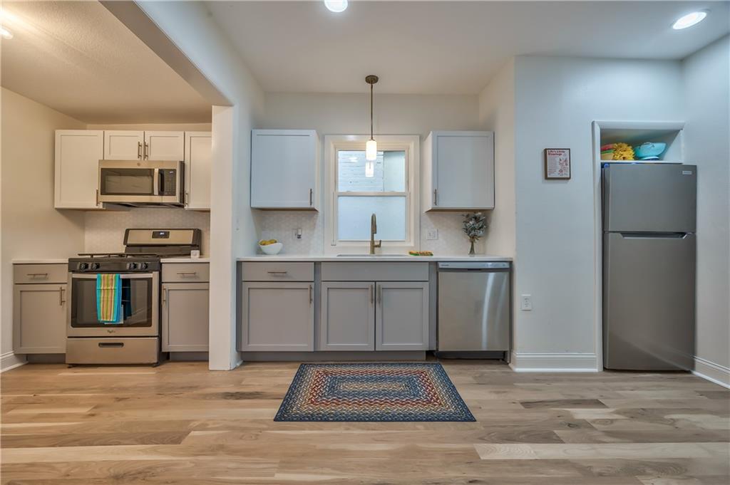 Timeless KC architecture meets modern joy in this gorgeous Pendleton Heights Shirtwaist. Stepping inside feels simply happy — bright, welcoming spaces with brand new natural white oak floors that flow throughout, complemented by a striking white oak staircase. The classic layout features a versatile first-floor bedroom that readily serves as a dining room, echoing how these historic homes were originally lived in. The kitchen is a blend of style and heritage, with crisp new cabinets, granite counters, a tiled backsplash, stainless appliances, and lighting that channels authentic Shirtwaist charm. Upstairs, you’ll find three more spacious bedrooms and another updated bath. Thoughtful laundry options include space for hookups in the first-floor bathroom closet (for a washer/dryer combo unit) and in the fresh/clean basement, as is traditional. Discover your private oasis: a newly built, oversized wood deck nearly as wide as the house itself — ideal for quiet evenings or weekend brunch. The inviting front porch is made for slowing down and watching the friendly neighborhood roll by. Live at the heart of Kansas City’s vibrant historic community. Just around the corner is the beloved Pendleton Heights Community Orchard, with Cliff Drive and Kessler Park offering trails, biking, and disc golf. This close-knit neighborhood also hosts “Coffee & Meet Your Neighbor” events — easy, welcoming ways to connect and become part of the community. Plus, it’s only minutes to the River Market, the Crossroads, and downtown KC. Zillow estimates the homes on either side are valued above $300K.