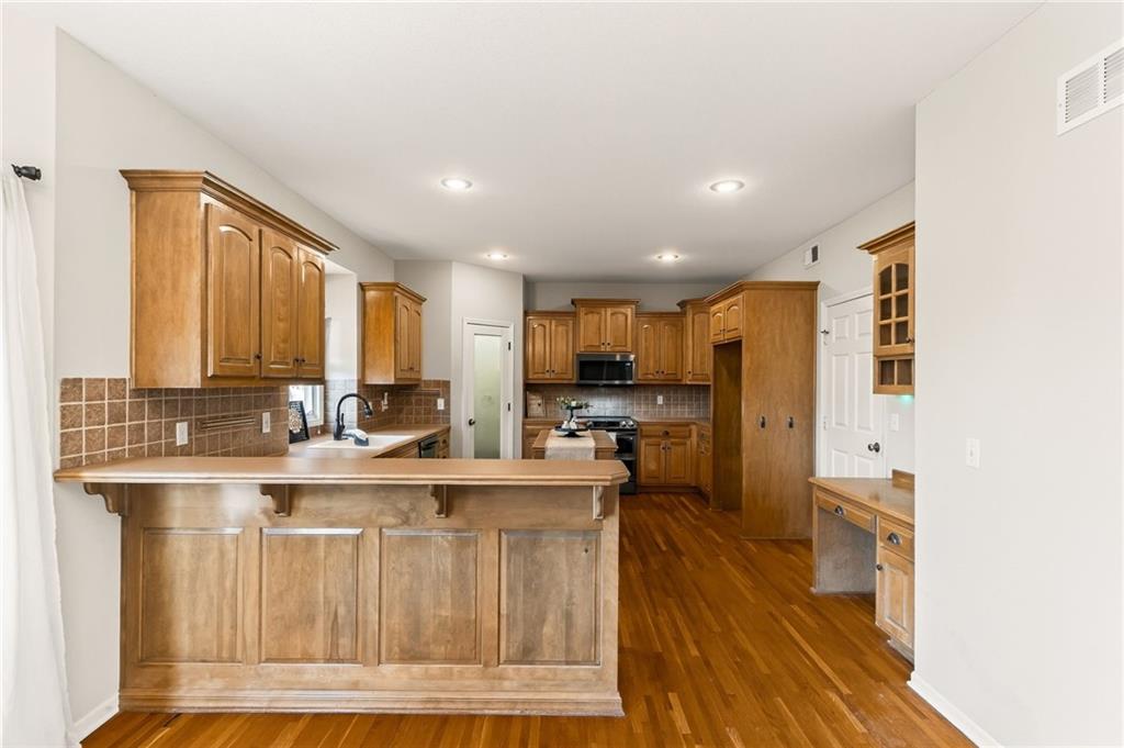 BEAUTIFUL TWO-STORY IN NORTHRIDGE HILLS! Fresh, clean, and move-in ready! This stunning home features an open floor plan and tons of upgrades. The kitchen boasts hardwood floors, a stylish backsplash, pantry, built-in desk, and stainless steel appliances—perfect for everyday living and entertaining. Enjoy meals in the formal dining room, then unwind by the cozy fireplace in the family room. Upstairs, the spacious primary suite offers ceiling accents, a walk-in closet, and a private bath with a jetted tub and separate shower. Convenient laundry room on the bedroom level. The walk-out lower level includes a second family room with a wet bar, fourth bedroom, and private office with custom built-ins. Outside, relax or host guests on the composite deck, enjoy the fully fenced yard, and appreciate the whole-home water softener. Located in a great neighborhood within the award-winning Park Hill School District, and just minutes from shopping, dining, and major highways—this home truly has it all!
