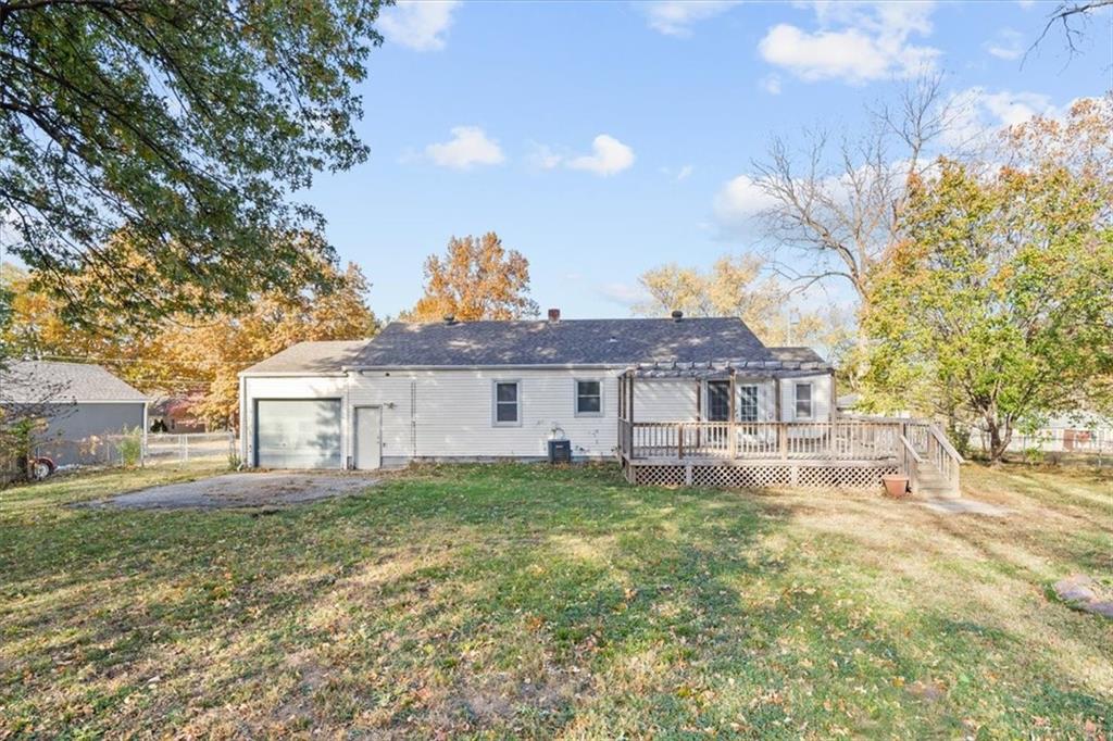 Beautifully updated Northland ranch on a true half-acre lot. This turnkey home features stunning hardwood floors, a fully renovated kitchen and bath, and a clean, well-maintained interior! The layout includes two spacious bedrooms plus a large bonus room that works perfectly as an office, den, or additional sleeping space depending on your needs. Oversized two-car garage with abundant storage, plus a rare third garage door on the backside and additional drive — ideal for extra parking, work vehicles, hobbies, or equipment. Massive yard with front and back deck provides privacy and room to expand outdoor living! Conveniently located near shopping, highways, and schools. A strong option for investors seeking low-maintenance turnkey rental potential or owner-occupants wanting move-in ready condition with extra space.