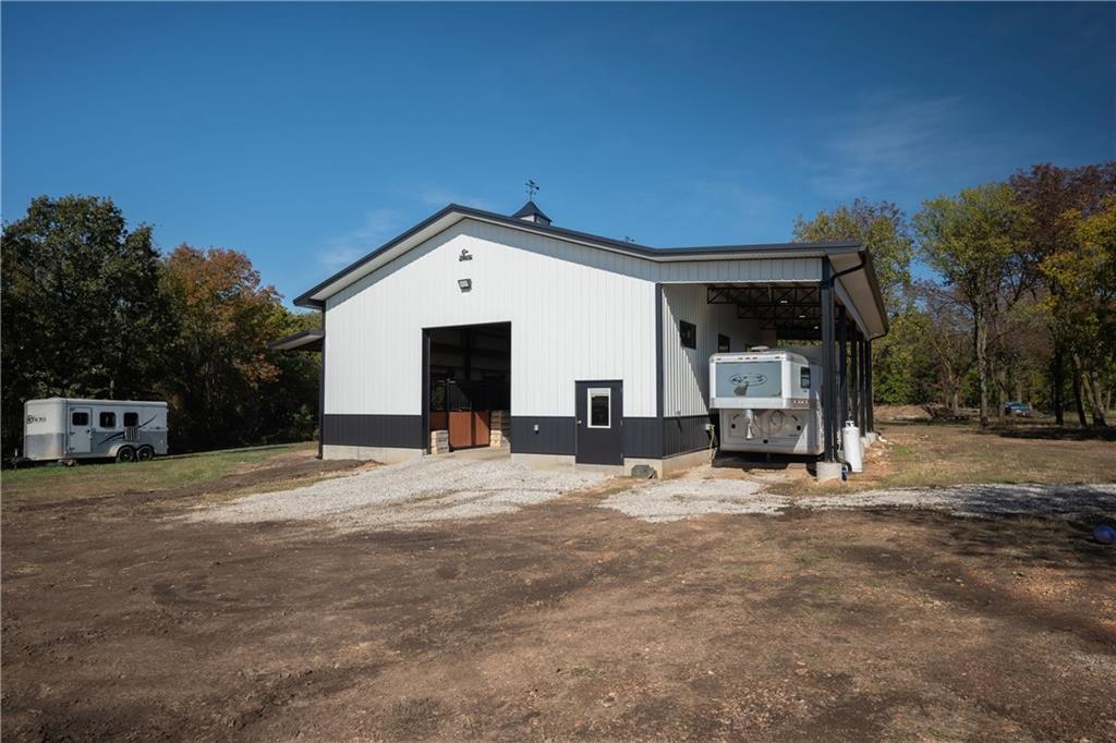 Equestrians, Your 20-Acre Haven Awaits: Custom Hostetler Steel Barn & Prime Amenities Discover the equestrian paradise you've been longing for – an enchanting 20-acre horse ranch featuring a custom Hostetler steel-built and insulated barn. This remarkable structure boasts 2 large automatic garage doors for effortless accessibility, along with 6 spacious 12x12 Priefert stalls, 4 of which offer Dutch doors leading outside, eagerly awaiting your personalized touch for custom runs. Indulge in the convenience of a generous 12x12 wash bay pre-wired for an on-demand hot water system (is there just not installed), ensuring your horses are pampered like royalty. The 12x12 tack/feed room features extra-wide doors, simplifying the task of transporting saddles or grain. On the east side of the barn, you'll find an attached covered parking area equipped with a 50 AMP RV plug and 14 feet of clearance, providing ample space for your horse trailer. An open area, measuring approximately 150'x250', has been meticulously leveled and prepared for a riding area, located conveniently close to the barn. Immerse yourself in the serene, wooded surroundings, with 10 acres of picturesque land offering shade and tranquility year-round. Just south of the barn, discover 10 acres of lush pasture, an automatic frost free water system, an open run-in shed, and secure pipe fencing. RURAL WATER IS AVAILABLE AT THE ROAD. This exquisite 20-acre horse ranch is the epitome of equestrian luxury and functionality. Don't let this opportunity pass you by – contact us today to schedule a private tour and let your equestrian dreams come to life!