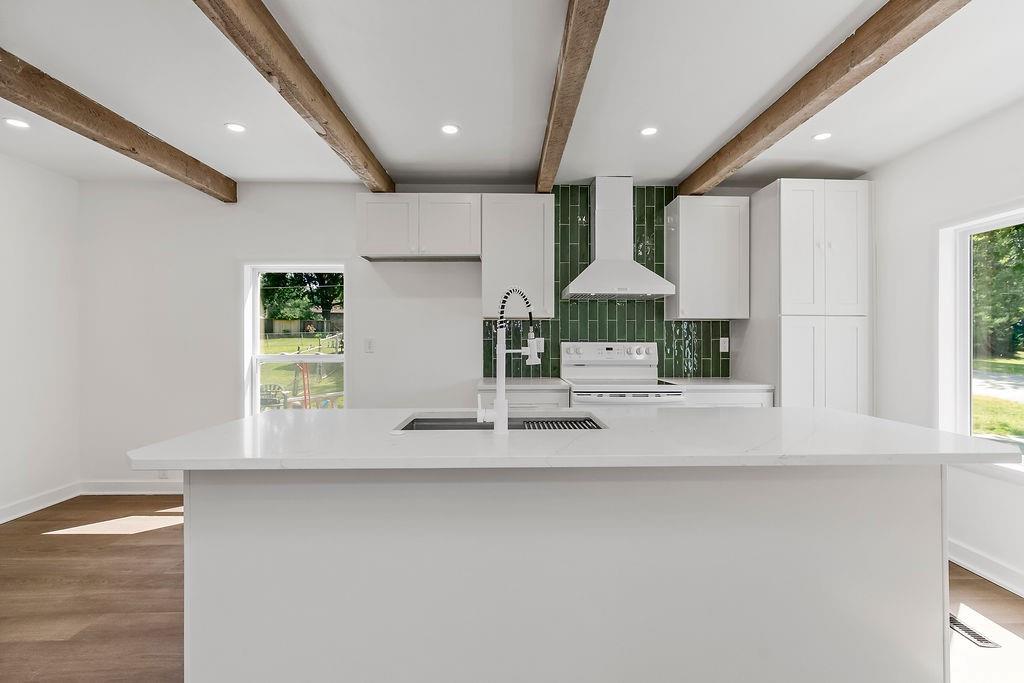 Beautifully renovated from top to bottom! This full rehab offers a custom-designed kitchen with modern finishes, complemented by refinished hardwood floors and LVP flooring in the kitchen and both baths. The primary suite features a walk-in closet and spa-inspired bath with a walk-in shower and double sink vanity. Fresh interior and exterior paint, new windows, and a newly installed paver patio and front porch enhance both comfort and curb appeal. Additional updates include HVAC service, duct cleaning, and complete pest treatment. Enjoy the large, flat backyard with mature trees and no rear neighbors—a cul-de-sac sits just beyond the back fence for added privacy. New landscaping completes this move-in-ready home!
