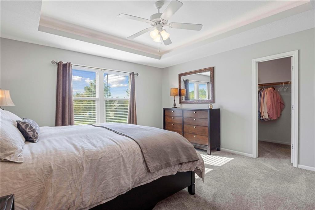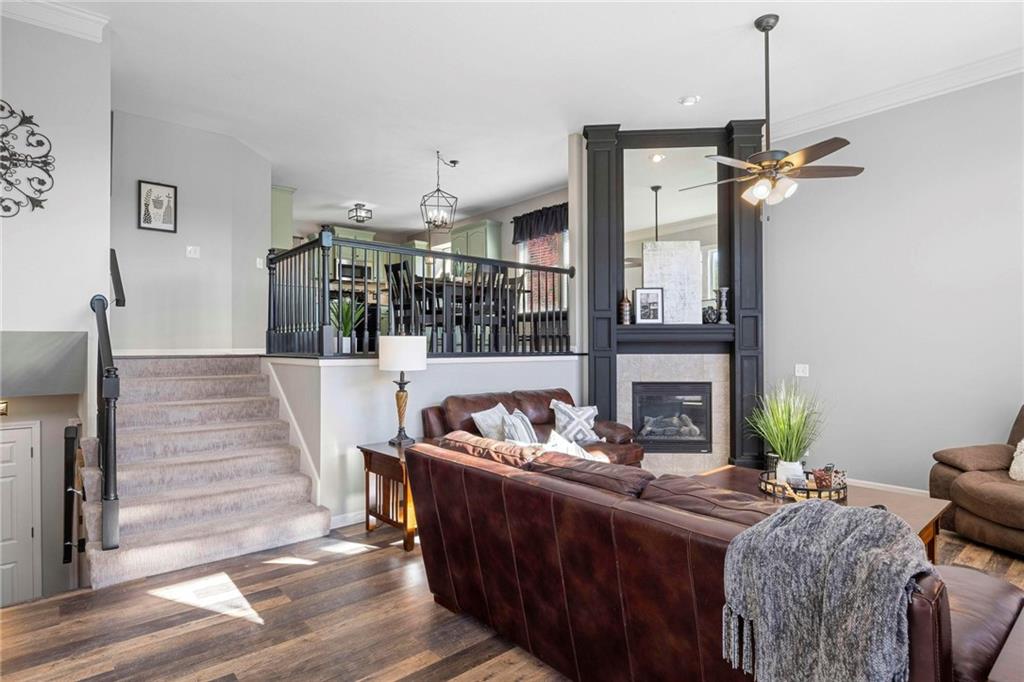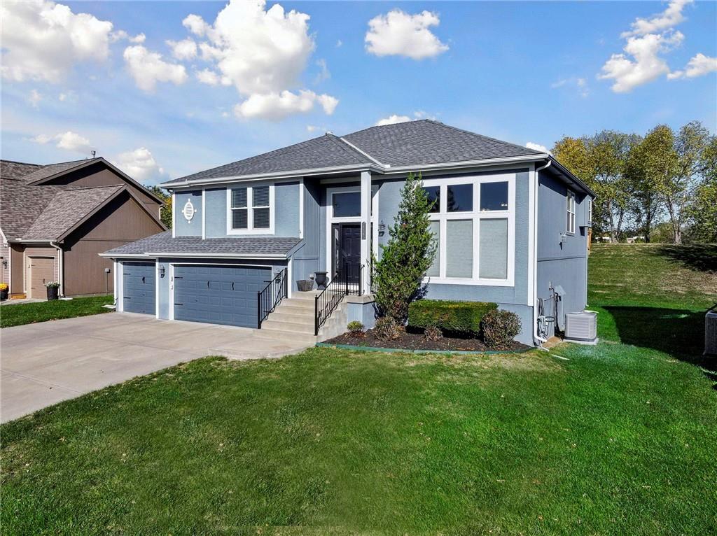 This is where the light lives! Open and Airy Floorplan with a Sunny Disposition! Entertainer's will love the large kitchen with granite counters, and spacious dining area with kitchen bar and soaring ceilings in the great room! Updated laminate flooring throughout the main living areas and fresh carpet in the bedrooms! The kitchen has a pantry closet and ample cabinets for storage. All appliances stay including washer and dryer! The Owner's Suite features a large bedroom, oversized bath with a corner jet tub and separate toilet room! Large Walk-in Closet! The Hall Bath connects between both spare bedrooms for private access! The lower level has a recreation room, 4th bedroom and full bathroom. Could be a perfect separate quarters or for guests that can't do stairs, they can enter from the garage and have everything they need! There is a lower sub-basement that is mostly finished and can be used as an office, or workout space or an extra gaming area! There is a nice laundry room with built-in cabinets for storage. The 3-Car garage is 24' deep and there is plenty of garage space for a workbench or additional storage plus 3 cars! The upper deck has new deck boards and stairs and the home has fresh paint, and newer HVAC System! Large Patio off the Recreation Room for more entertaining space! Perfect location in Liberty, just blocks away to Grocery, Post Office, Library and the Liberty Community Center! Coveted Liberty School District! Just across Withers Road is the Canterbury Walking Trail System, Play Area and Pickle Ball Courts! Take the back way on South Liberty Parkway to I-35 & Pleasant Valley Road or the Flintlock Fly Over to get to KC side shopping in a breeze! Head into Liberty Square for a unique shopping and restaurant experience! There is an active HOA /restrictions in the neighborhood. Don't hesitate! Look at this unique opportunity today!