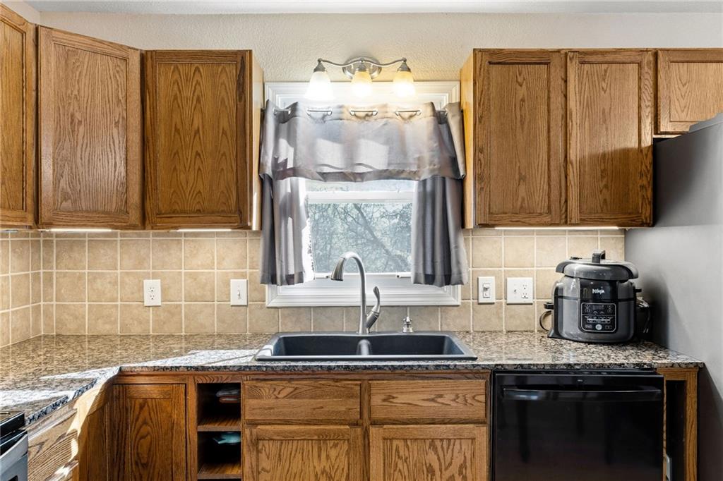 True ranch located on a private street with a large yard that backs to a beautiful treed greenspace. Featuring four bedrooms and two full bathrooms, this home has been newly remodeled so all you need to do is move right in. You’re right—it doesn’t get any better than this. Inside, you’ll love the real hardwood floors, stainless steel appliances, and built-in storage in the kitchen. The main floor offers three bedrooms, including a primary suite with direct access to the updated bathroom featuring tile flooring and a tiled shower surround. The finished lower level provides a fourth bedroom and full bathroom, perfect for separate living quarters, with walk-out access to a large patio and fenced backyard just under half an acre. There’s plenty of room to expand or add a garage or storage shed, plus an additional concrete parking pad for convenience. The home has been thoughtfully maintained with annual HVAC servicing and pest maintenance, and includes smart-home features such as a Ring camera, keyless front door entry, and a smart thermostat. Great highway access makes it easy to get anywhere in the Kansas City metro area.