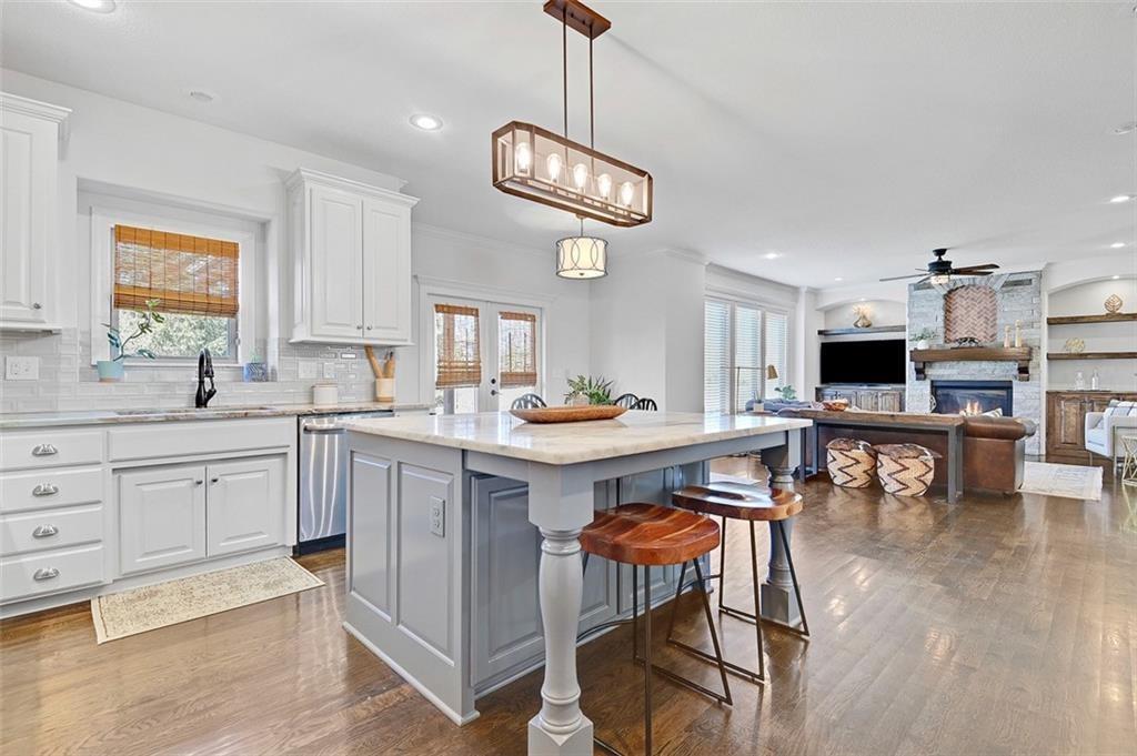 Beautiful 2-Story home is ready to move into! Hardwoods throughout the main level! Fabulous built-ins and designer touches throughout! Custom kitchen cabinets with large island, extra hutch space and walk-in pantry provide plenty of storage space. Eat in kitchen plus formal dining room allow for gathering family and friends. Boot bench at garage entrance keeps shoes, bags and coats organized. Main level bedroom or office with built-ins and access to full bath. Kitchen opens to great room with even more built-ins and a beautiful stone fireplace! Walk out to the covered, stamped concrete patio and enjoy the cozy firepit. Unfinished basement provides additional storage space.