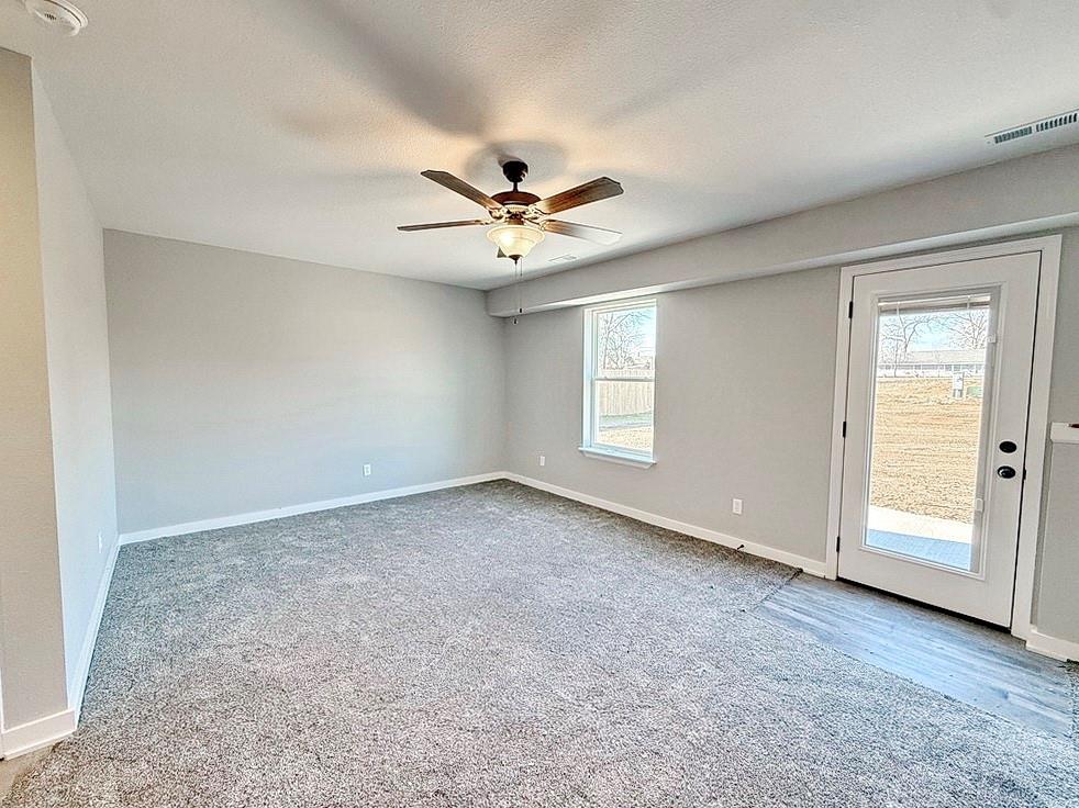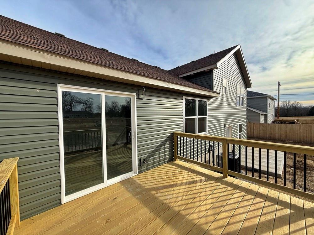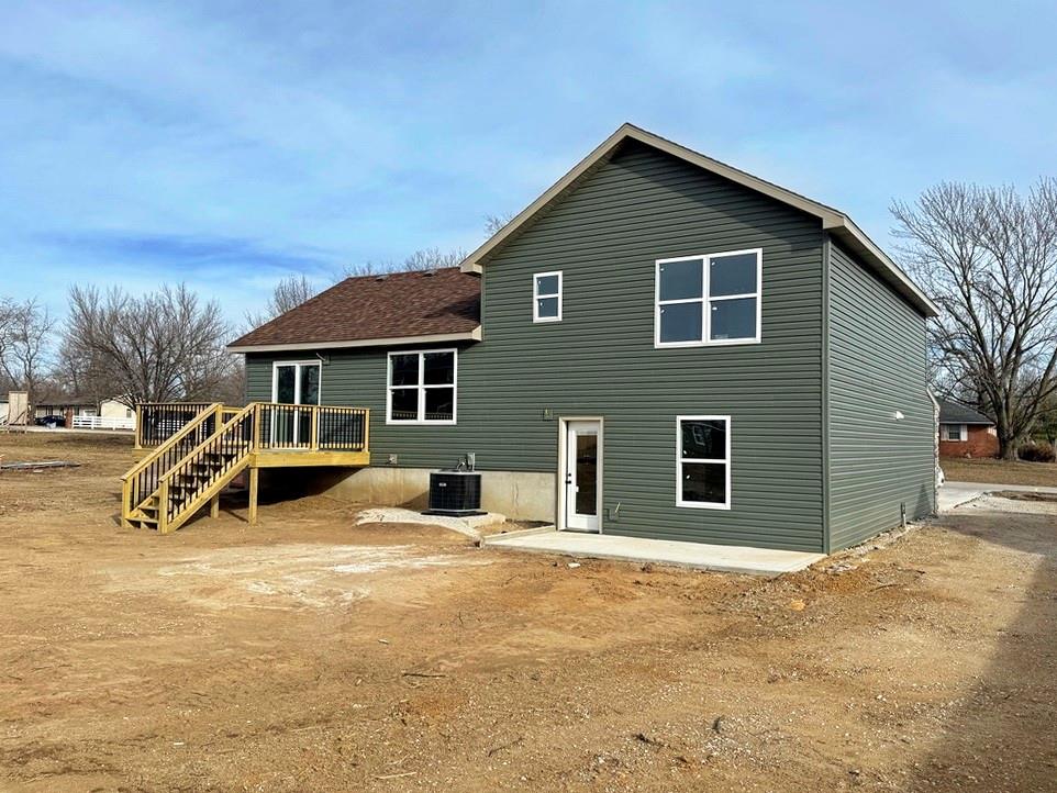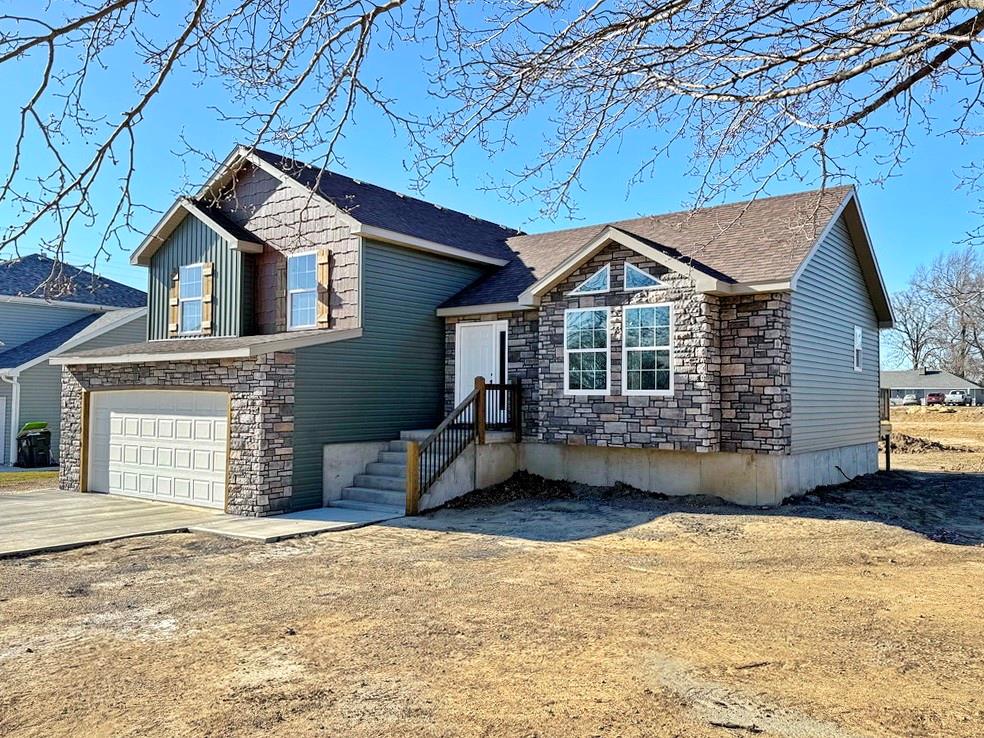 New-Built Home on South Side of El Dorado Springs. Be the first to own this modern, new-construction home in El Dorado Springs, Missouri located on a nice lot near the south edge of town. The 3 bed, 2.5 bath contemporary, California Split style home with total 1,661 sq ft will be completed in early January 2026 and ready for its first occupant. The tri-level home will feature slick finishes with an open concept living room, kitchen, and dining on the main level. The main level is tastefully designed to maximize the spacious feel by including vaulted ceilings, large, beautiful windows, and a decorative balcony. In the kitchen there will be custom wooden cabinets and an island with granite countertops, and appliances will be included, making it a functional and attractive central hub of your home. The 12’ x10’ deck offers additional space to dine and entertain just outside the kitchen. The main level opens seamlessly to the lower-level family room offering additional space for residents and guests to spread out. Also on the lower level is the utility room, a half bathroom, and the 20’x20’ 2-car garage. Additionally, the backyard can be accessed from the lower level where a 15’x6’ patio is another great space to enjoy the outdoors. The 3 bedrooms are all together on the upper level of the home. The 14’x13’ primary bedroom has a walk-in closet as well as an en-suite bathroom with full-sized walk-in shower. The 2 guest bedrooms share the full hall bathroom also on the upper level. As a bonus, the home has 552 square feet of additional all-concrete storage space under the main level of the home that is easily accessed from the lower level. This home will feature an attractive rock face with low maintenance vinyl siding on the remaining 3 sides. A buyer who puts this home under contract soon may have an option to select some interior color choices possibly including flooring, paint, cabinet stain, and granite. Call soon on this great opportunity for a brand-new home!!
