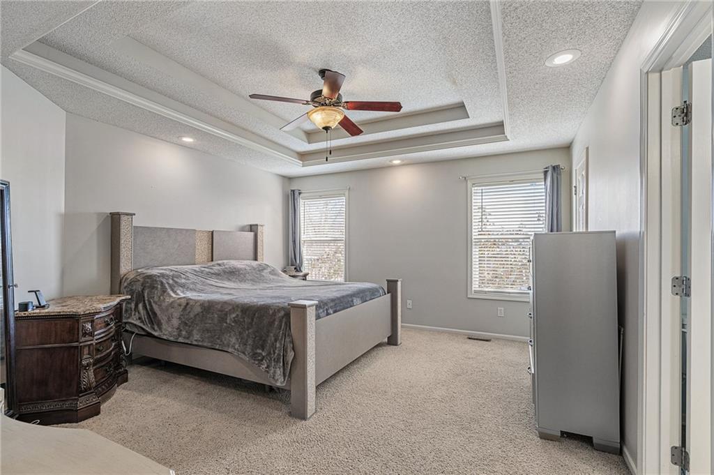 This bright & inviting split-level home is truly ready for its new owner. The open living room and kitchen feature vaulted ceilings and generous natural light. Major updates have already been done— including a roof that’s under two years old and a newer HVAC — so you can just move in. Living room has a fireplace and the eat-in kitchen walks out to the deck which overlooks the large back yard with newer fence, offering plenty of outdoor space. Primary bedroom is spacious with cathedral ceiling and large ensuite bathroom has double vanities. Recreation room in finished lower level is great for additional living space. Featuring 3 Bedrooms, 2.5 Baths, and a 2-car garage, there is also plenty of storage in the lower level. Great neighborhood with a community pool and park. Welcome Home.