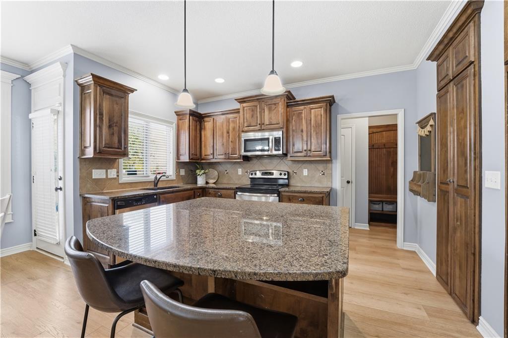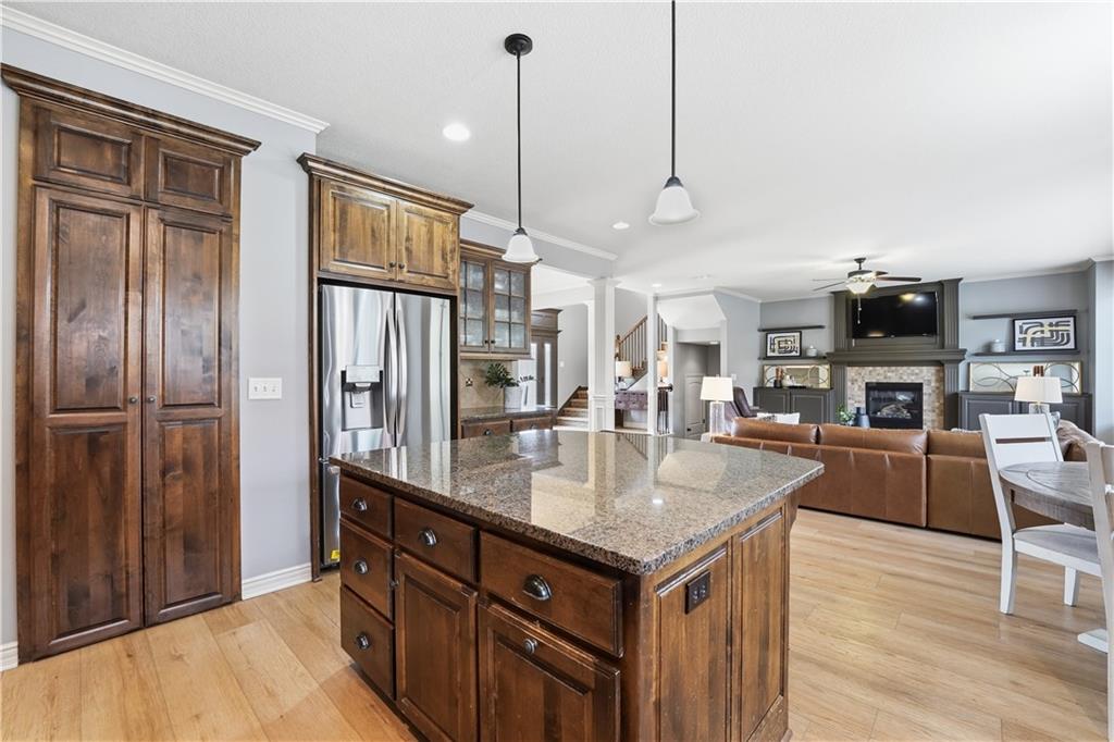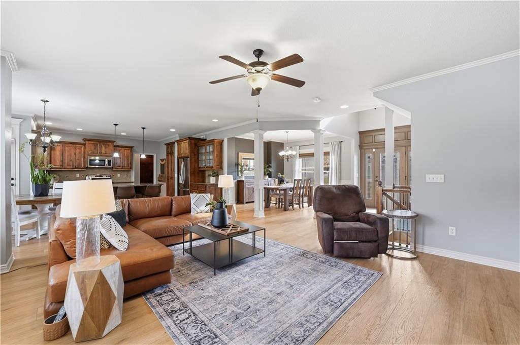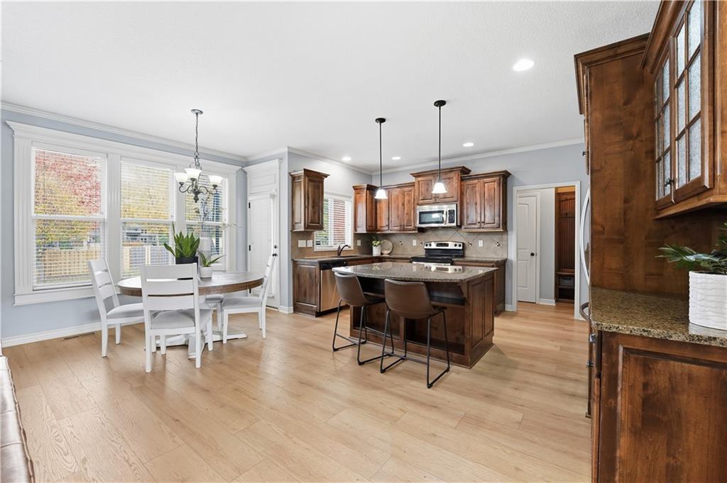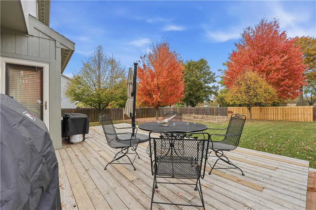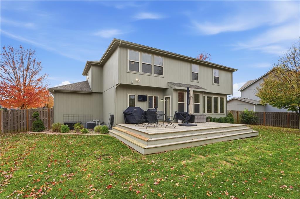 Welcome to this pristine two-story home in the highly sought-after Summit Mill neighborhood of Lee’s Summit! From the moment you step inside, you’ll be greeted with an airy, refreshed interior featuring all-new flooring on the main level... and crisp, on-trend paint throughout. The living room offers warmth and style with beautiful custom built-ins and shelving, creating a perfect backdrop for everyday living and entertaining. The sellers thoughtfully finished the lower level, adding an oversized rec room with more custom built-ins, brand-new carpet (just one week old!), and a convenient bathroom. Upstairs, you’ll find four spacious bedrooms, each with generous closets and natural light that makes every room feel inviting. Step out back and enjoy the large, fully fenced yard complete with an expansive deck and raised garden beds. It’s the perfect setup for grilling, gardening, or gathering with friends. The exterior was freshly painted, giving the home standout curb appeal and a crisp, modern look. The mature landscaping and trees paint a beautiful back drop while enjoying your outdoor space. Summit Mill is one of Lee’s Summit’s most loved communities...complete with a neighborhood pool, an elementary school right in the subdivision (Highland Park Elementary), and even a stocked fishing pond. Just down the road, you’ll find Legacy Park and the Tom Lovell Community Center, and Lake Jacomo is nearby for boating, kayaking, or a day by the water. Restaurants, coffee shops, donuts, pharmacy, hospital, and library are all within minutes...truly a location that checks every box. All the charm, all the updates, and all the convenience. This Summit Mill gem is ready to welcome you home.