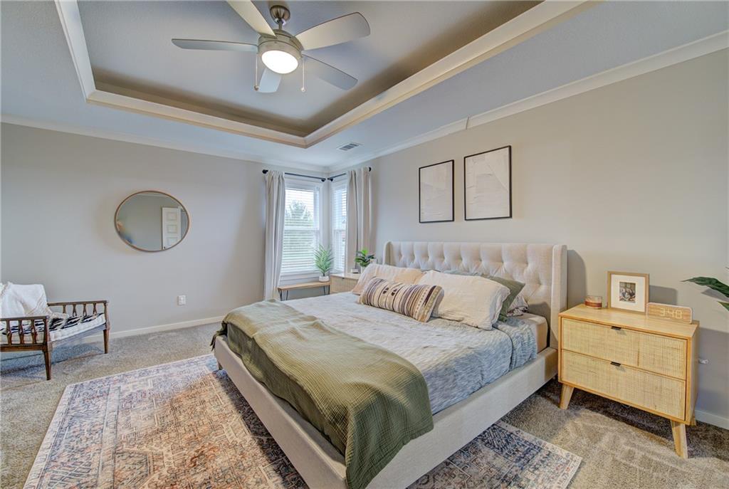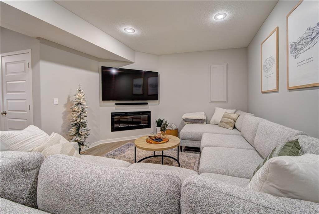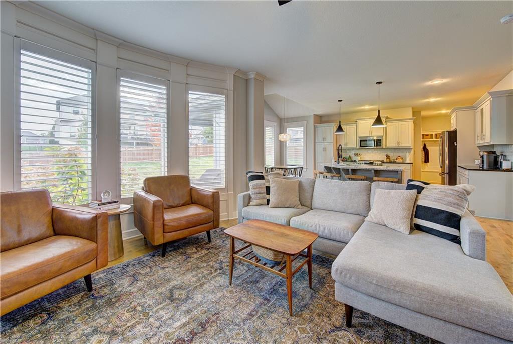 This two-story home, built in 2018, shows the pride of ownership. It looks like new without the wait! Entering you see the hardwood floors and vaulted ceilings, open floor plan and its almost 3,500'. The main level features a formal dining area into the living room, with a beautiful fireplace, large windows for the sun to shine through. And nice built-in shelving. The eat-in kitchen has beautifully painted cabinetry, an island with extra seating, and a large walk-in pantry with a nice 1/2 bath on the main level. From the kitchen, you can access the covered patio, an ideal space for entertaining and watching the kids and pets play in the fenced back yard. Situated on a 0.26-acre lot, the backyard offers nice landscaping, a privacy fence, and nice plants and bushes. Upstairs, the primary suite awaits, complete with a tray-lit ceiling and large windows. The oversized primary bathroom features beautifully tiled floors and shower, a large soaker tub, and a spacious walk-in closet. Also includes two additional bedrooms with a Jack and Jill bath, a 4th bedroom with private suite, and a nice laundry room on this level. The lower level, finished in 2020, incorporates the modern finishes and attention to detail found throughout the rest of the home. It features a tiled wet bar with extra cabinetry, a sink, and quartz counters, and an extra count top perfect for the kids to do homework or just a place to enjoy. A cozy family room and 2nd fireplace. The fifth bedroom/office, with double door entry, and the fourth full bath complete this level, with luxury vinyl plank floors throughout With access to the wonderful amenities Benson Place Fieldstone has to offer and located within the award-winning Liberty School District. This home truly has it all. Come See, Fall in Love and make this your next place to call Home.