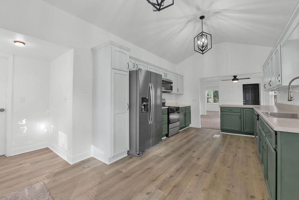 This recently updated charmer offers the perfect blend of cozy living and incredible garage and workspace options. It is ideal for anyone needing room for hobbies, vehicles, storage, or even a home based business. Inside, you’ll find a light filled living room that opens to an eat-in kitchen featuring stainless steel appliances and plenty of cabinet space. The home includes 2 bedrooms and 1.5 baths, and the walk-up attic provides the opportunity to finish additional living space if desired. The exterior is where this property truly shines. Situated on a private lot with plenty of room to spread out, it includes a 2 car detached garage with an oversized storage or workshop area, plus a separate 1 car detached garage with a finished upper level that could be used as an office, studio, gym, or creative space. Recent updates, including new HVAC and water heater, offer peace of mind so you can move right in and start enjoying everything this unique property has to offer. A rare opportunity to get big-time garage and workspace flexibility at an affordable price! Don’t miss it!