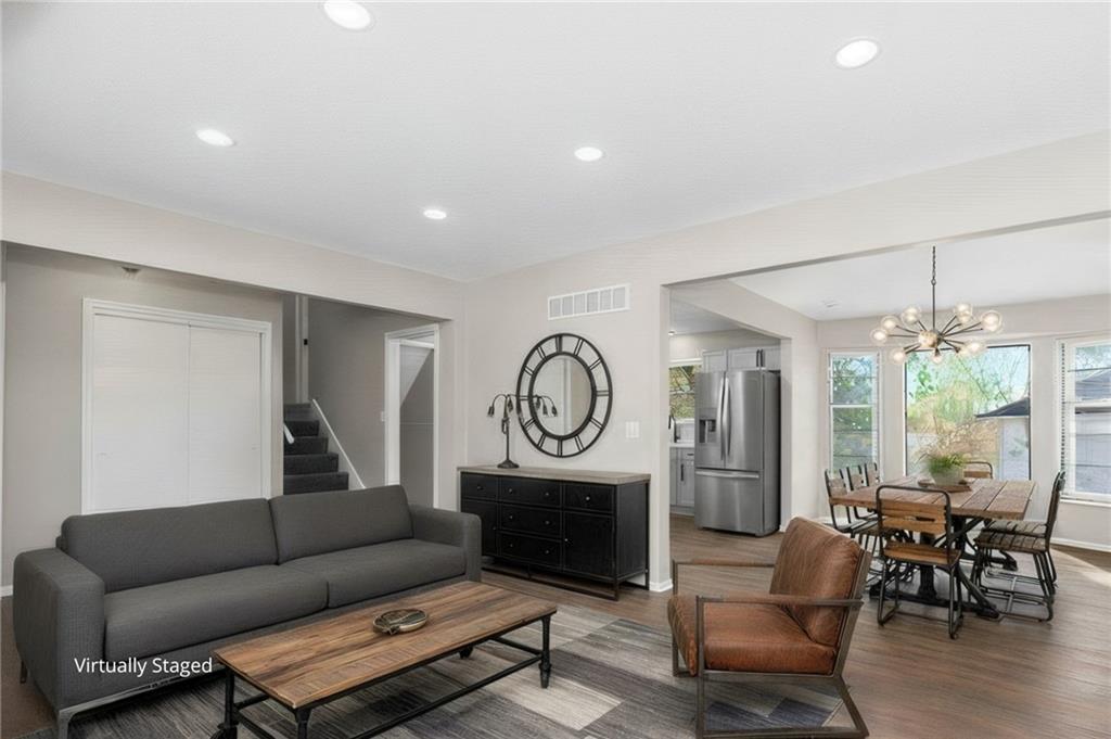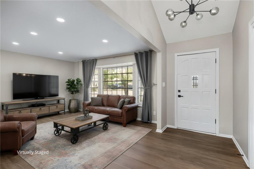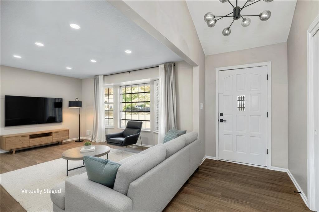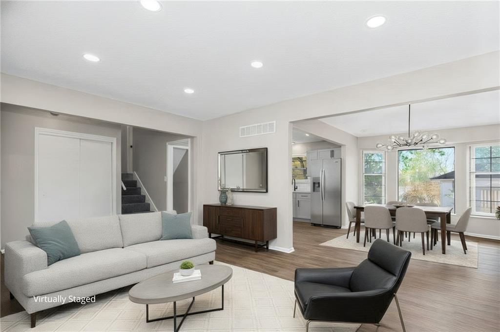 Freshly remodeled and move-in ready, this charming 3-bedroom home offers a warm blend of comfort and style. Situated on a large corner lot at the end of a peaceful cul-de-sac, the property features mature trees, a fenced backyard, and convenient walk-out basement access—perfect for outdoor living, gardening, or play. Step inside to find new carpet throughout the bedrooms and living areas, fresh interior and exterior paint, updated fixtures, and sleek ceramic tile flooring in the kitchen and baths. The bay window in the spacious living room fills the space with natural light, while the cozy family room features a fireplace, ideal for relaxing evenings. The kitchen is equipped with new stainless steel appliances. Additional highlights include a new roof, attic storage space, and a recently upgraded electrical system with a new main breaker panel installed in July 2024. Outdoor recreation is just minutes away—Longview Lake and Marina are approximately 2.8 miles down the road, offering boating, trails, fishing, and lakefront fun. This home combines updates, character, and a fantastic location. See it and make it yours!