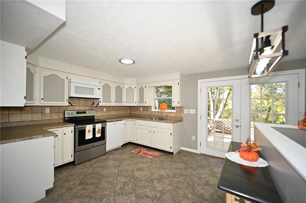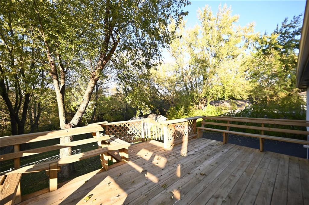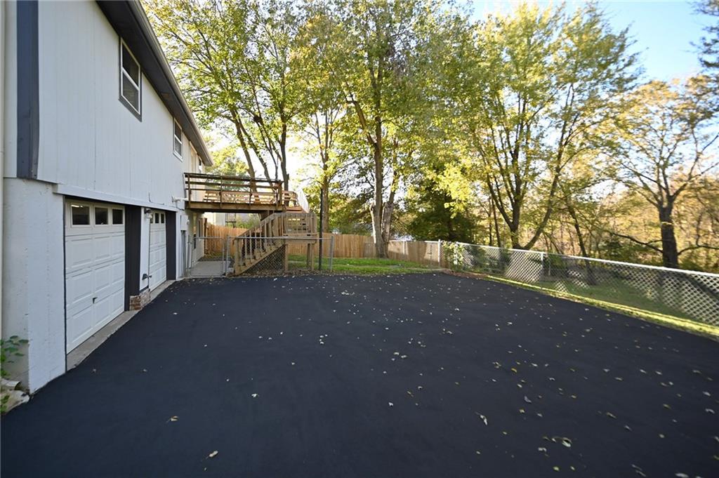 Ready to move in! Enjoy this tranquil setting. Updated raised ranch with gorgeous, private, fenced yard. Lounge on the deck and enjoy nature. New flooring in most of the home. Beautiful stone fireplace in the family room. Roof only 5 years old. Home has been well cared for and it shows. Home sits off the main road with lots of off street parking. Nice spacious 2 car garage with openers. Lower level has potential for another bath, laundry area. Close to airport, shopping, and entertainment, and is in Platte County RIII school district.
