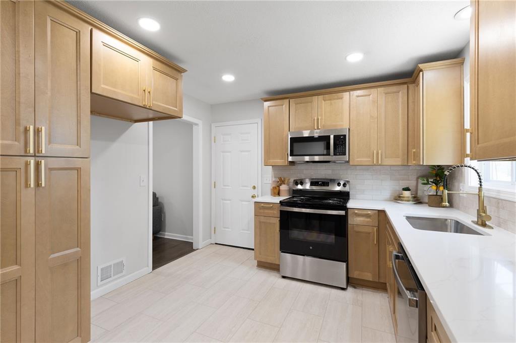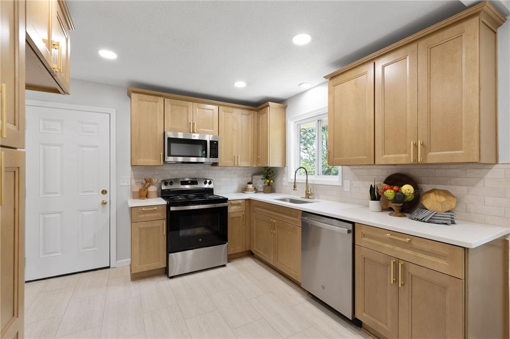 Priced to sell! Beautifully remodeled 4-bedroom, 3-bath ranch with a finished walk-out basement and all new updates throughout! Bright, open layout with new hardwood floors, brand new natural shaker cabinets, quartz countertops, stainless steel appliances and recessed lighting. Three bedrooms and two full bathrooms are on the main level. The primary suite includes a private full bath. The lower level offers a spacious second living area, full bath, and 4th bedroom—perfect for guests or an office. Enjoy the new deck, huge fenced yard, and updates including new appliances, plumbing, electrical, and windows. Move-in ready and minutes from parks, schools, and highway access. Schedule your showing today!