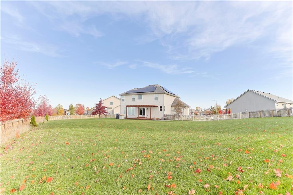 Nestled on a quiet cul-de-sac, this thoughtfully designed home offers the ideal blend of style, functionality and location. The open floorplan welcomes you with soaring ceilings, abundant natural light and a warm, modern aesthetic. The heart of the home features a beautiful kitchen seamlessly flowing into the dining and living spaces,perfect for both everyday living and entertaining. A spacious primary suite complete with dual vanities, walk-in shower and a generous walk-in closet! Downstairs you’ll find a versatile space—idealrecreation area with 3 TV hookups! Outside, the fully fenced backyard offers a serene setting for summer evenings, with ample room for BBQs, play or simply relaxing. This home was crafted with quality in mind, premium finishes and smart-home touches, and energy-efficient features and even a dedicated 240V garage EV charging outlet. With low-maintenance landscaping, a three-car garage, and a highly rated Blue Springs School District, the location truly has it all. Just minutes from shopping, dining and major road access, you’ll enjoy both convenience and tranquility. Check it out, NOW! Update- Blue accent wall has been painted grey since photos. Seller has added it to the photo collection along with some of the jellyfish lighting experience frm last season.